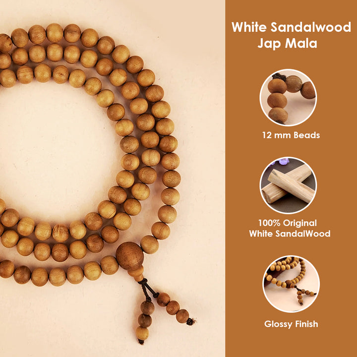 White Sandalwood Jap Mala | Original White Sandalwood Mala | Mala for Vishnu and Lakshmi Jaap | Pure Chandan Mala for Puja | Natural White Sandalwood Prayer Beads |