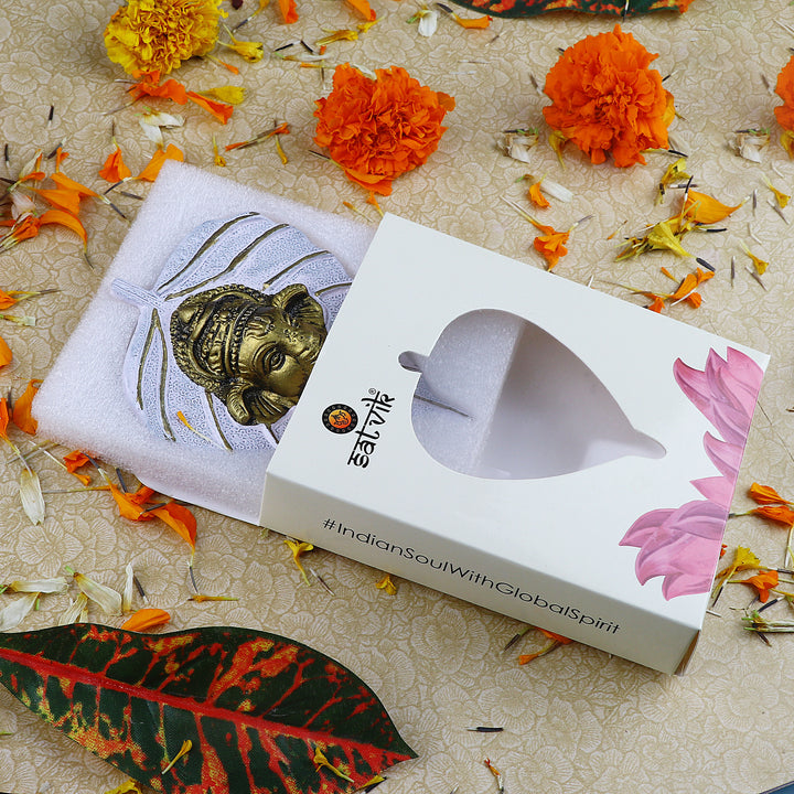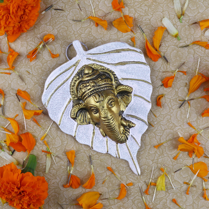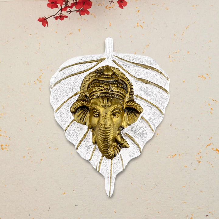 Buy Lord Ganesh Face on Leaf Patta Wall Hanging White | Satvikstore.in – satvikstore.in