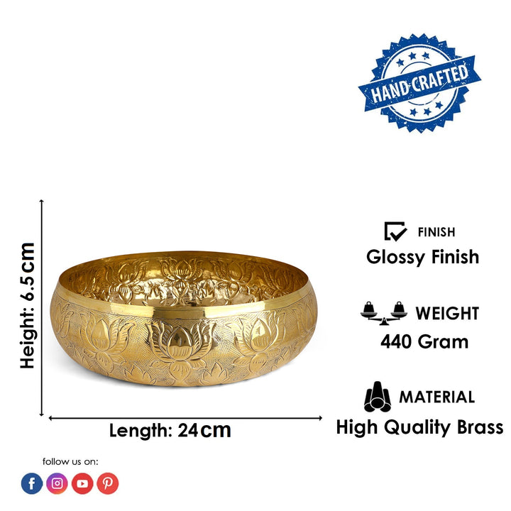 • Material: This Urli is Made Up of Pure Brass With Hammered Design in the Base & Floral Pattern Embossing in Side