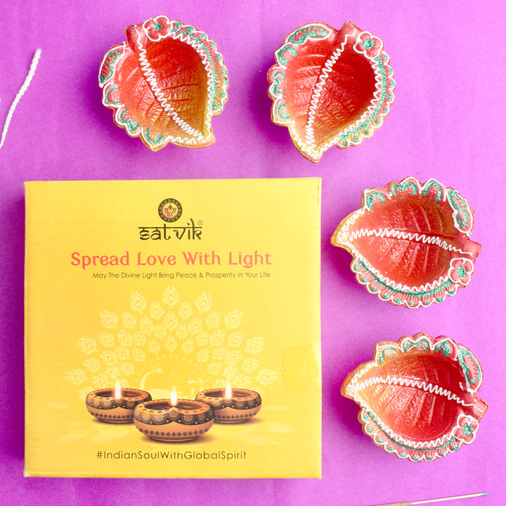 Leaf Design Celebrating Diwali with Clay Diyas Set of 4