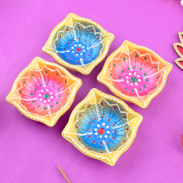 Diwali Radiance Beautifully Crafted Clay Diyas Set of 4