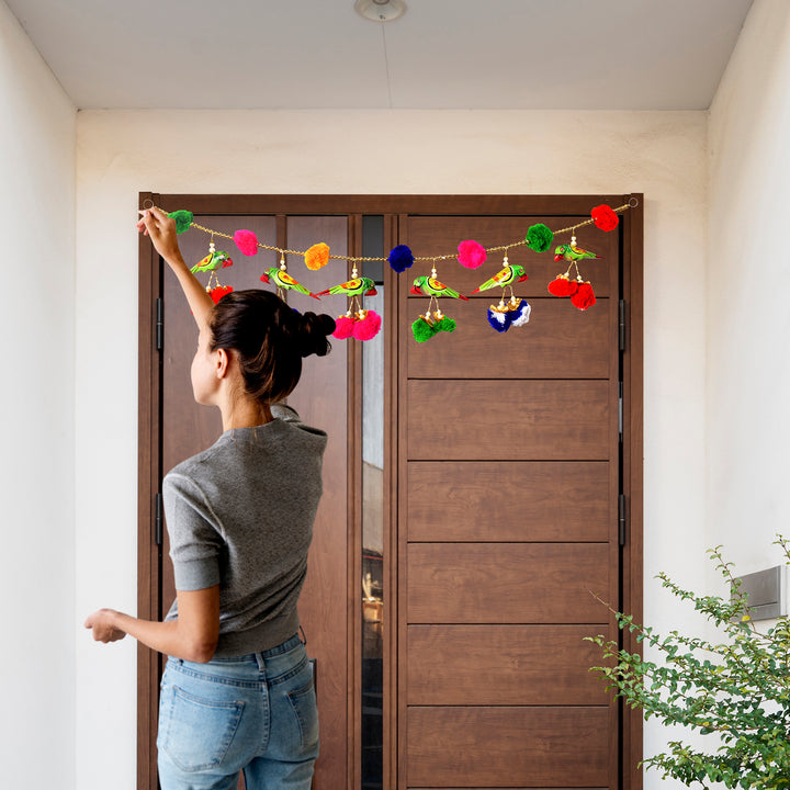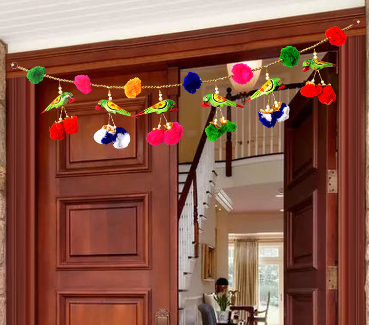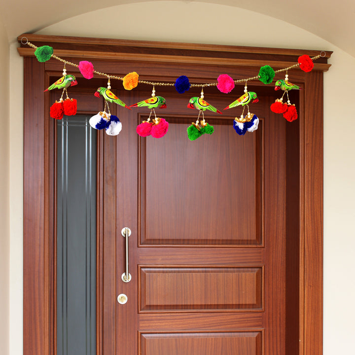 Buy Online | Jaipuri Parrot Puppet Pom Pom Toran | satvikstore.in