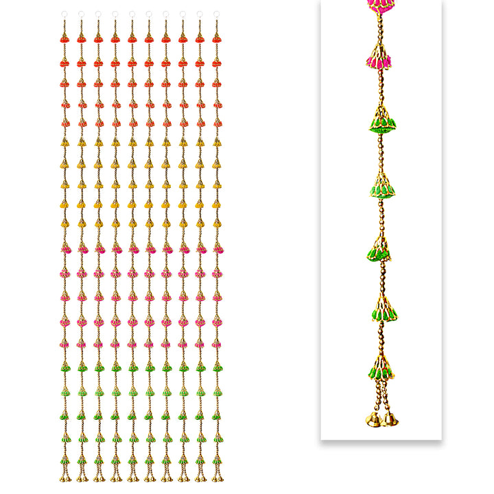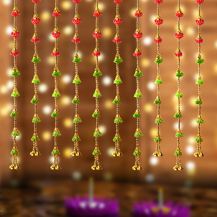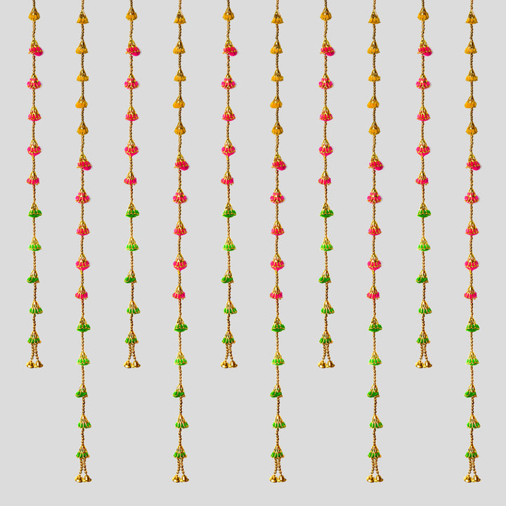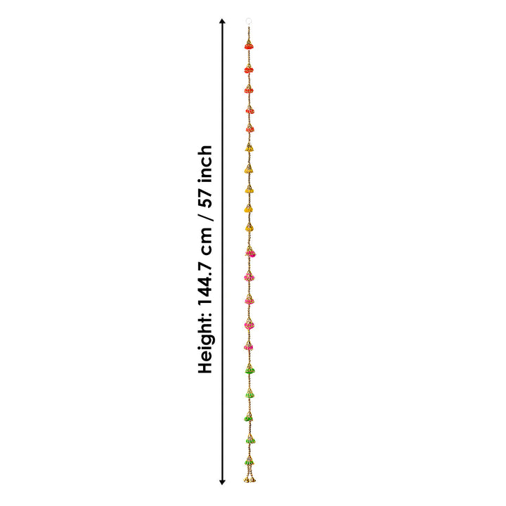 Add a playful and festive charm to your home décor with this Pom Pom Wall Hanging Backdrop featuring decorative bells. Crafted with colorful pom poms and jingling bells, this latkan is perfect for brightening walls, doorways, or windows during festivals, celebrations, and special occasions.