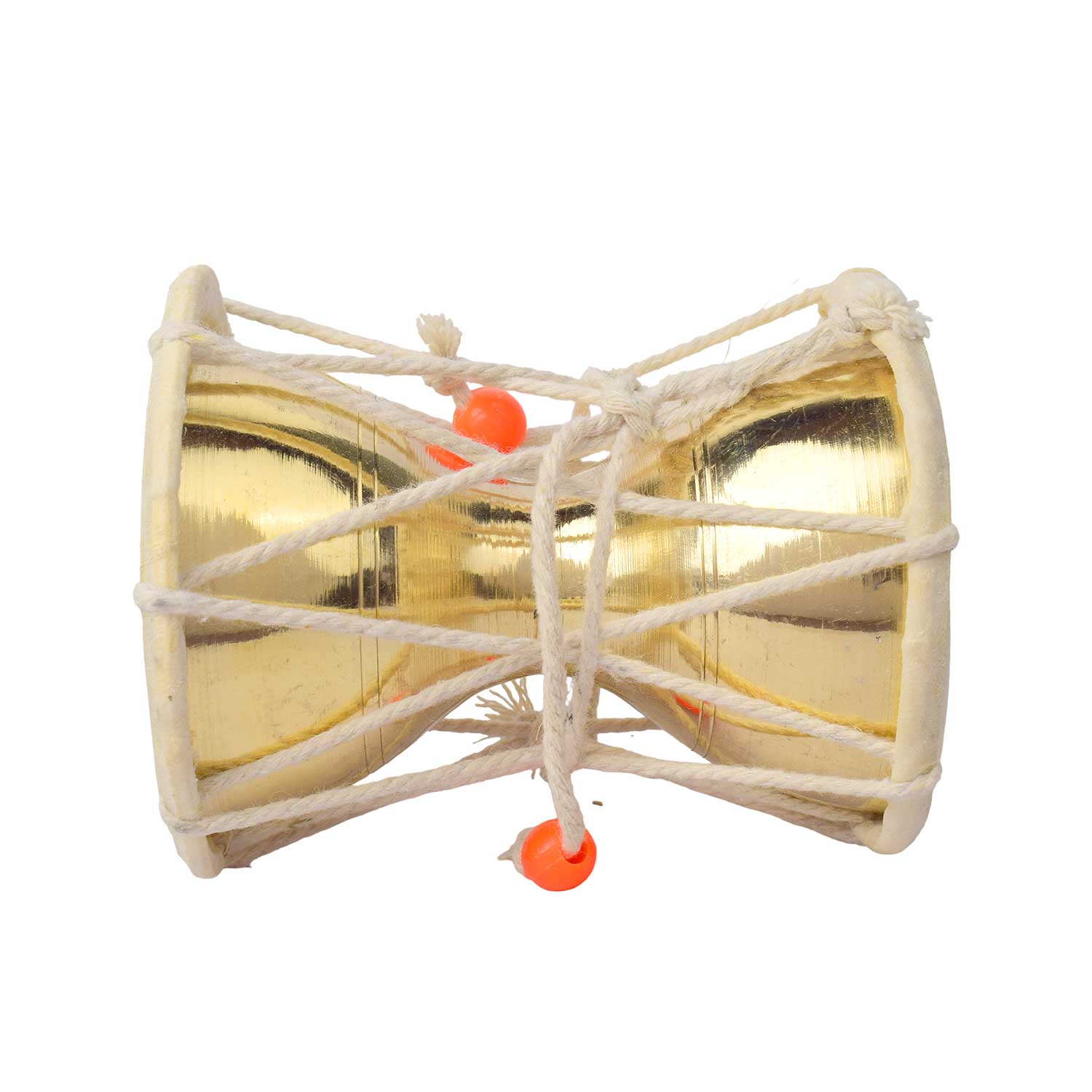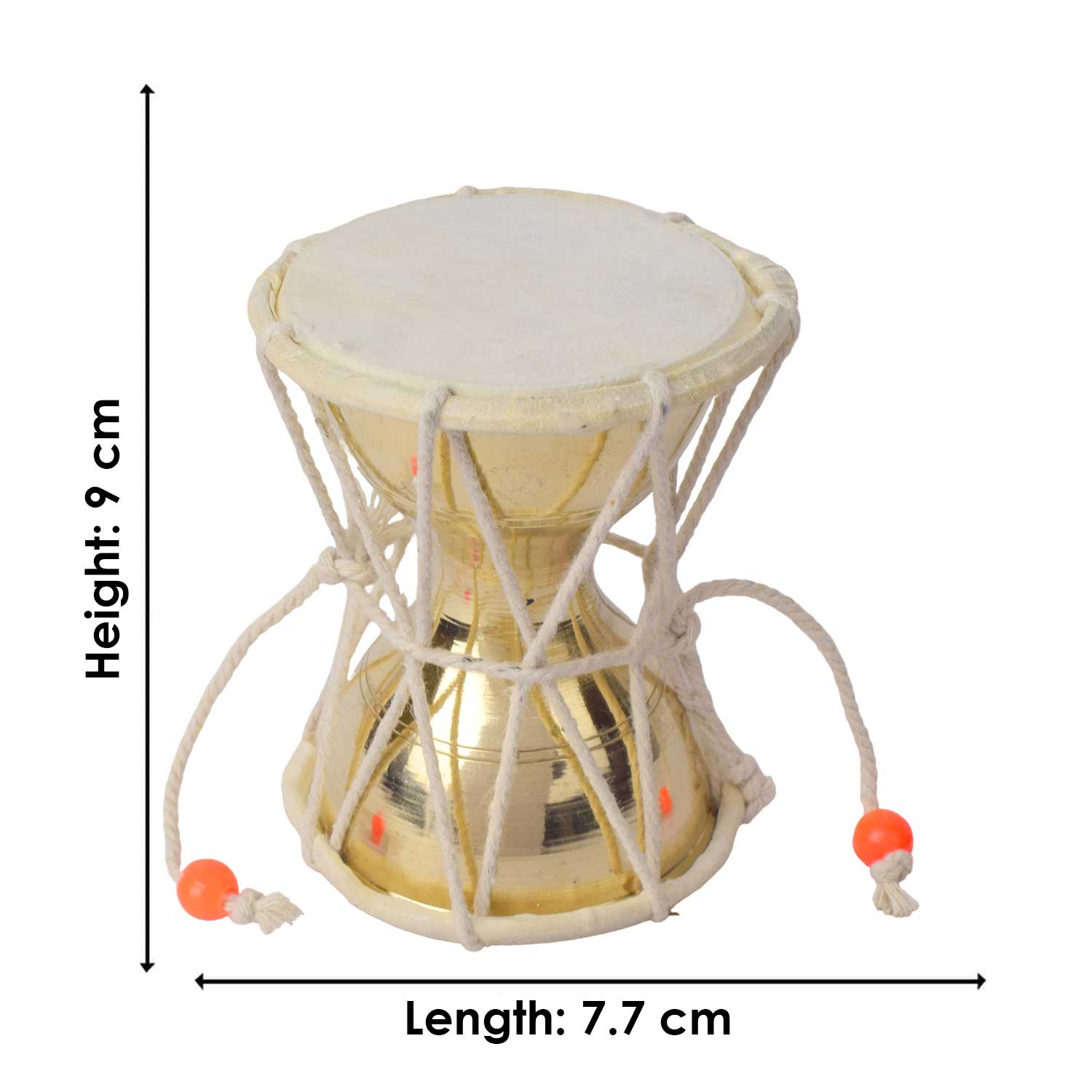 divine brass damru | brass damru for pooja | 4 inch pooja damru | compact damru for temple | damru for lord shiva | spiritual damru instrument | meditation damru | brass damaru | shiva damru for aarti | pooja accessories india