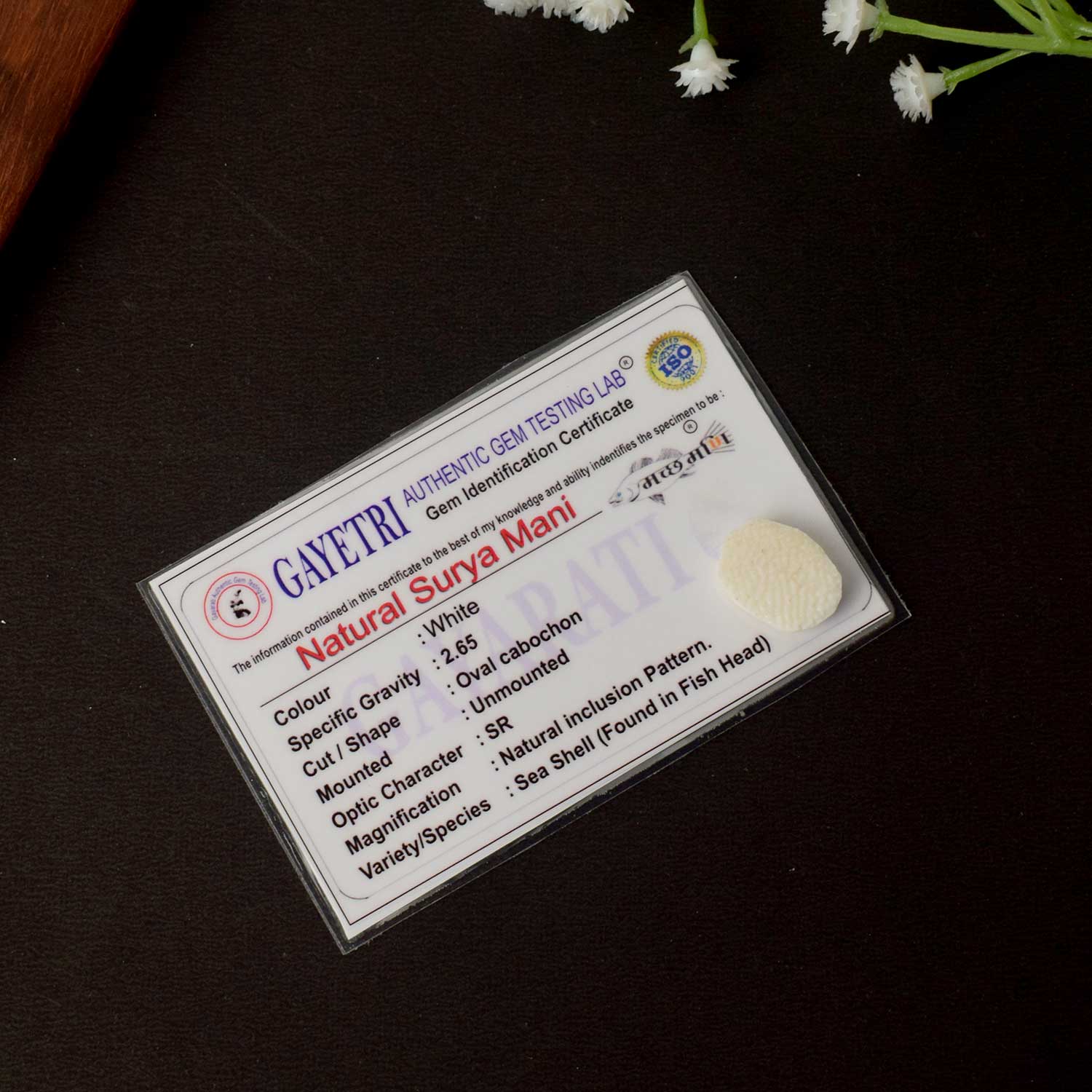 • Item Name: Certified Surya Mani / Machh Mani in White Finish