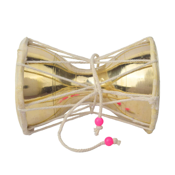 divine brass damru | brass damru for pooja | 5.5 inch pooja damru | medium size damru for temple | damru for lord shiva | shiva damru for aarti | meditation damru | brass damaru | spiritual damru | pooja accessories india