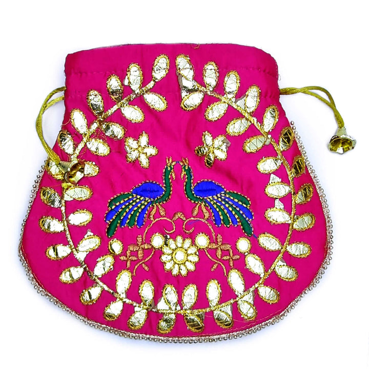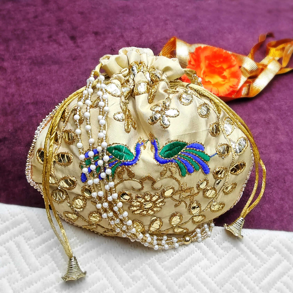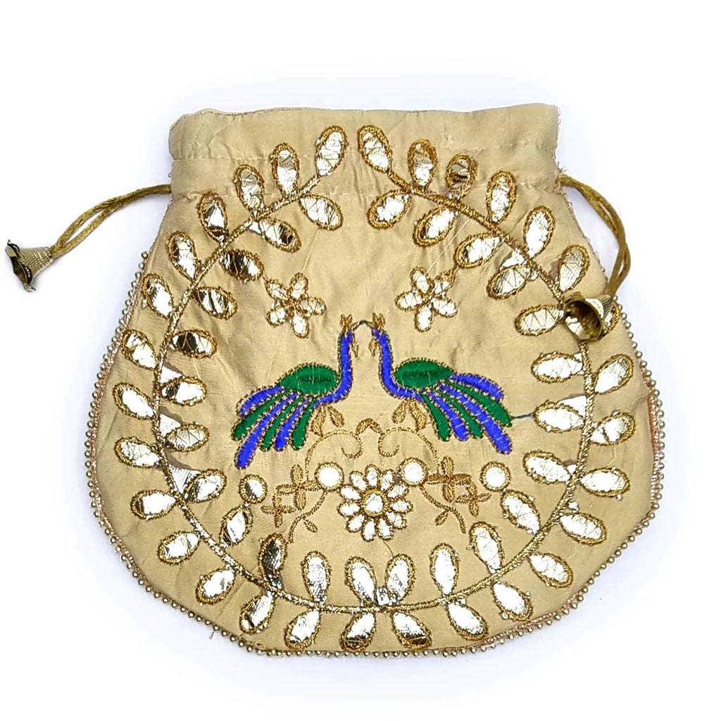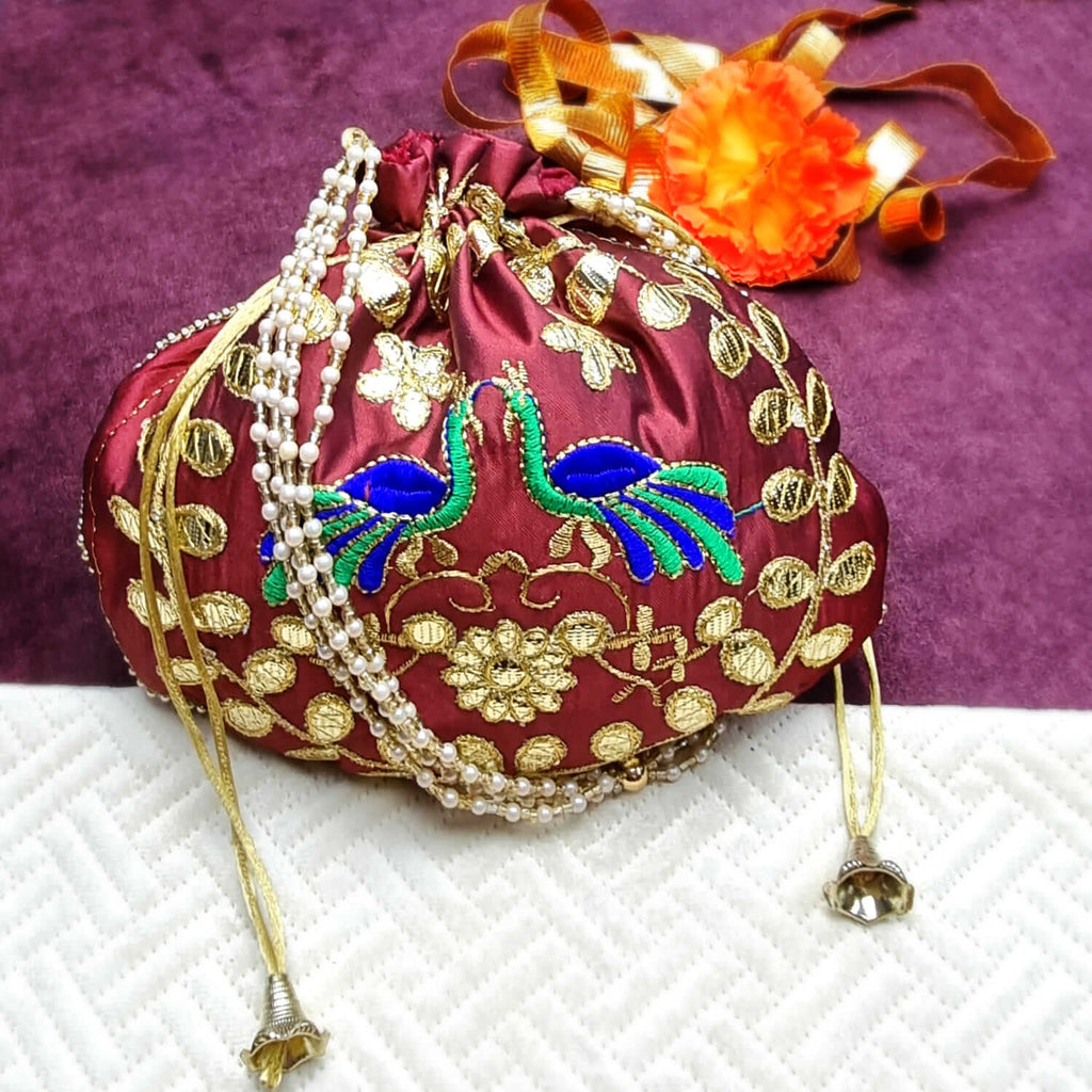 Ethnic Peacock Design Zari Work Women's Potli – satvikstore.in