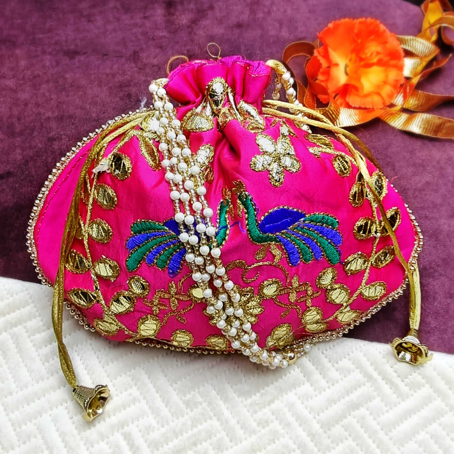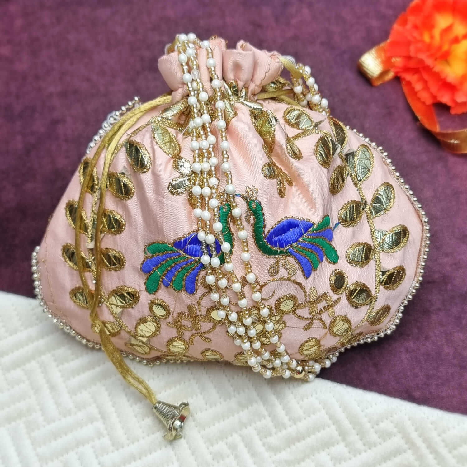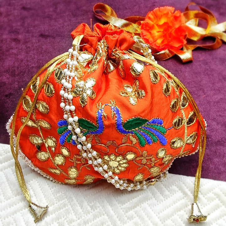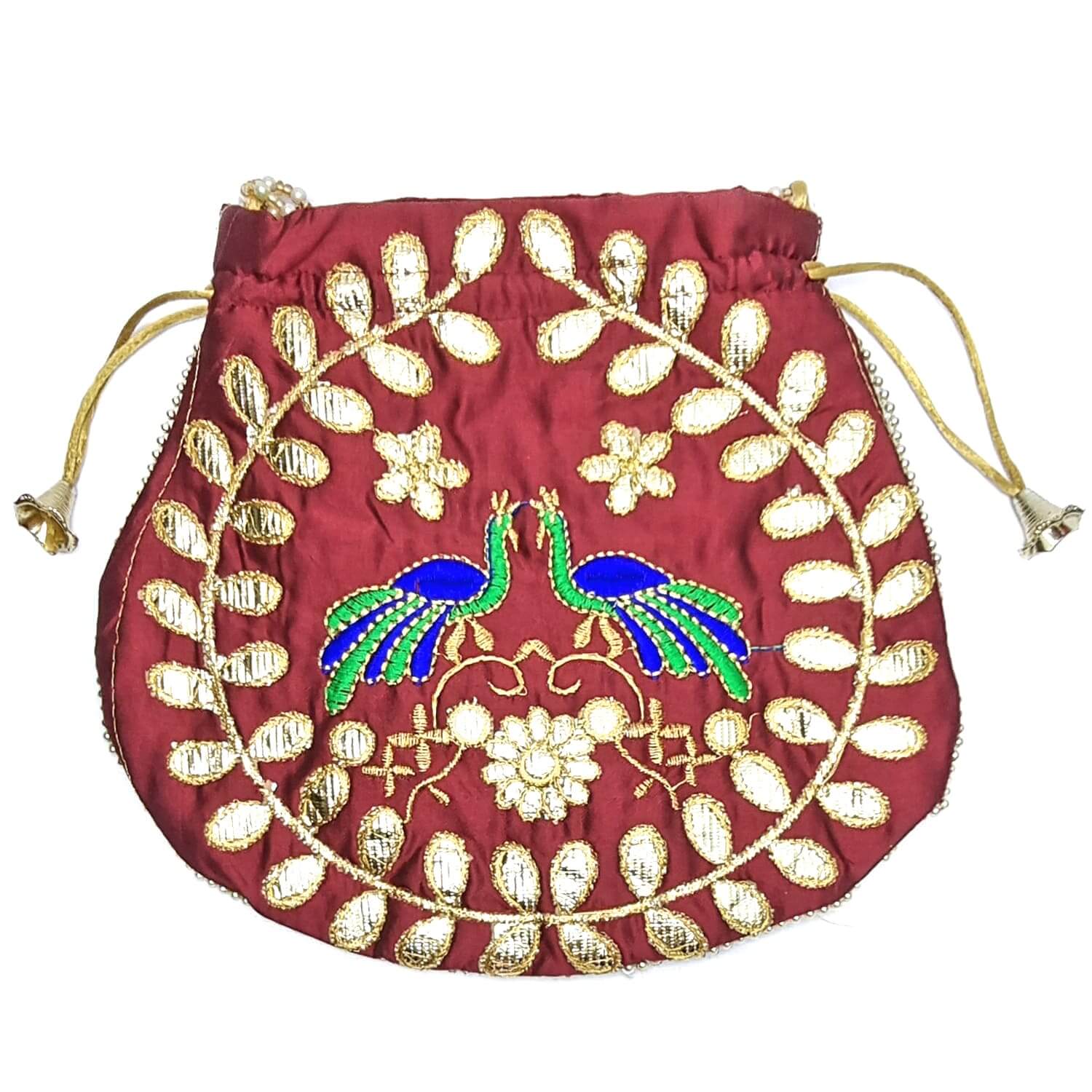 Ethnic Peacock Design Zari Work Women's Potli – satvikstore.in