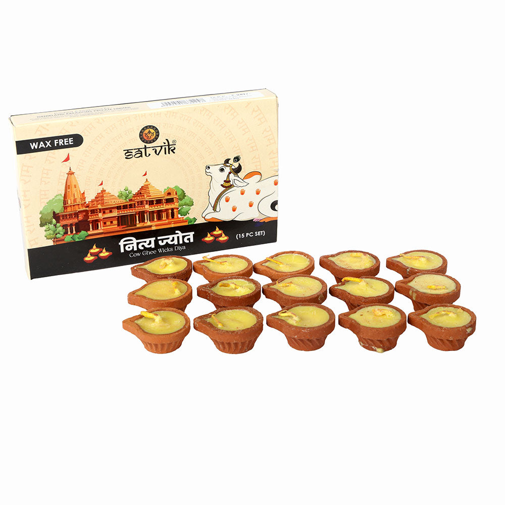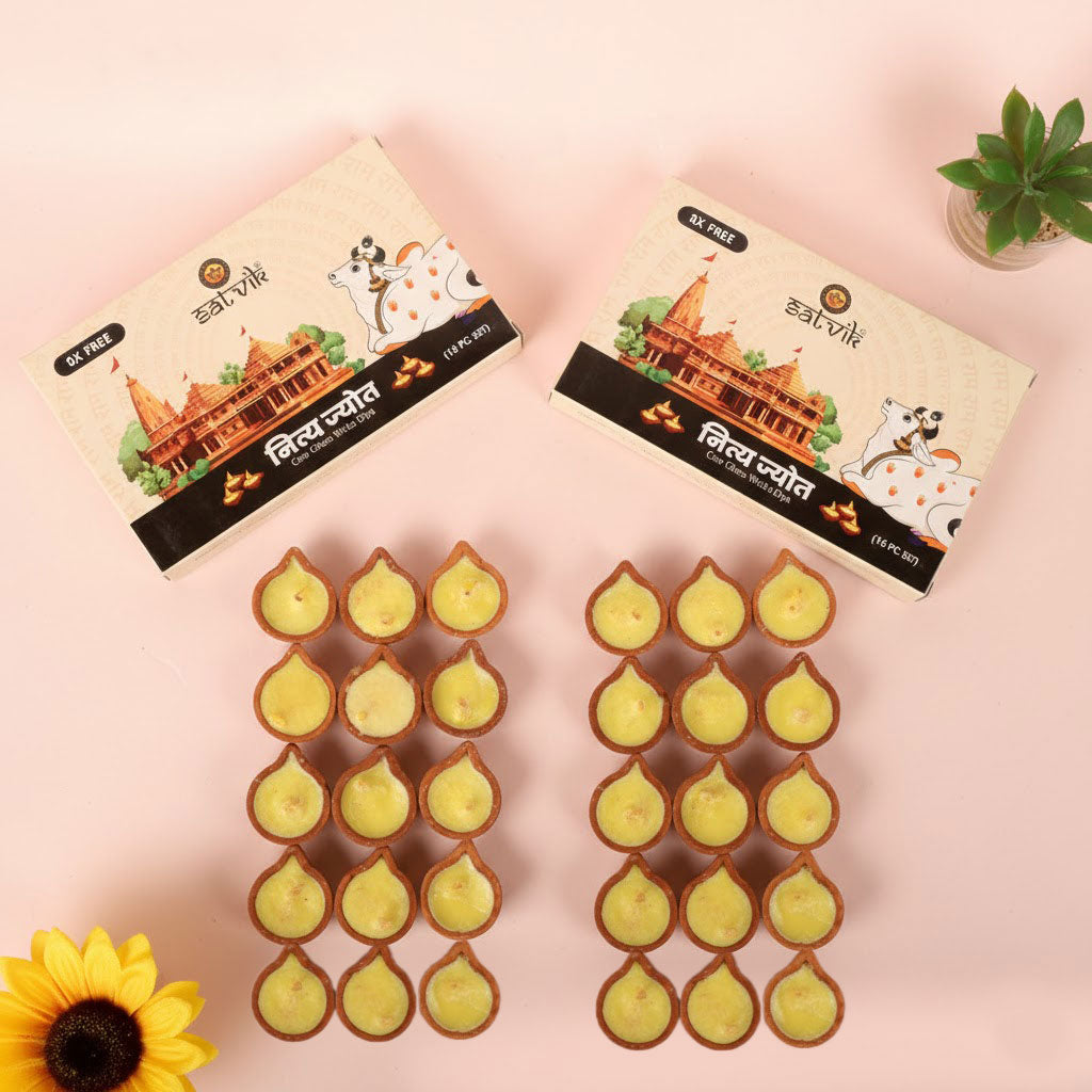45 min cow ghee diya | nitya jyot cow ghee diya | 45-minute cow ghee diya | long burning cow ghee diya | eco-friendly ghee diya | pure cow ghee diya for pooja | spiritual ghee diya | handmade cow ghee diya | traditional nitya jyot diya | satvikstore cow ghee diya