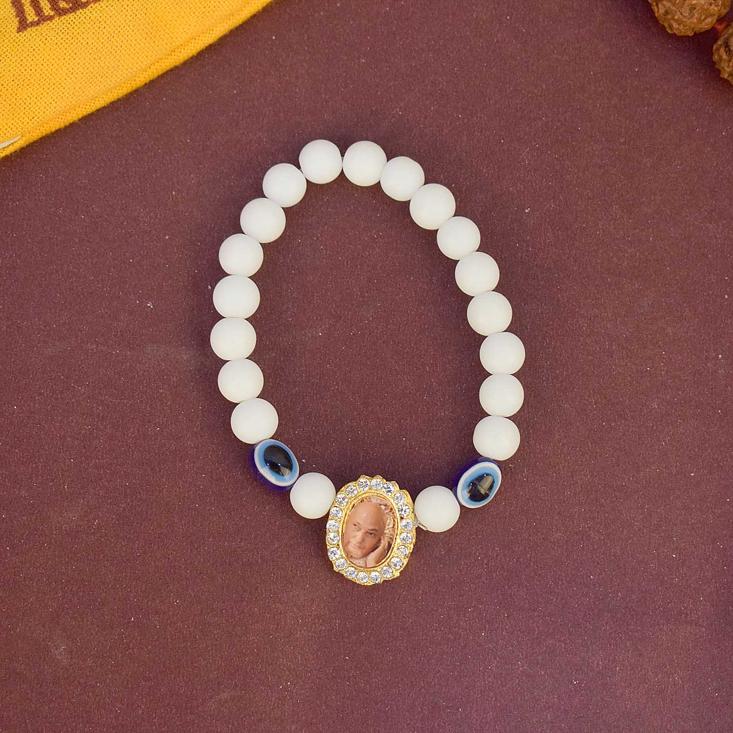 Buy Online | White Evil Eye Single Layer Guruji Swaroop Bracelet | satvikstore.in