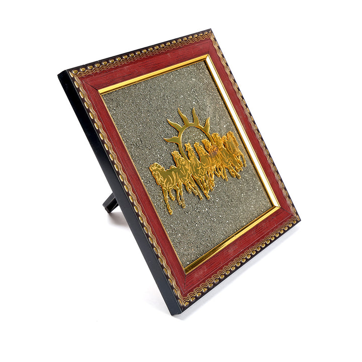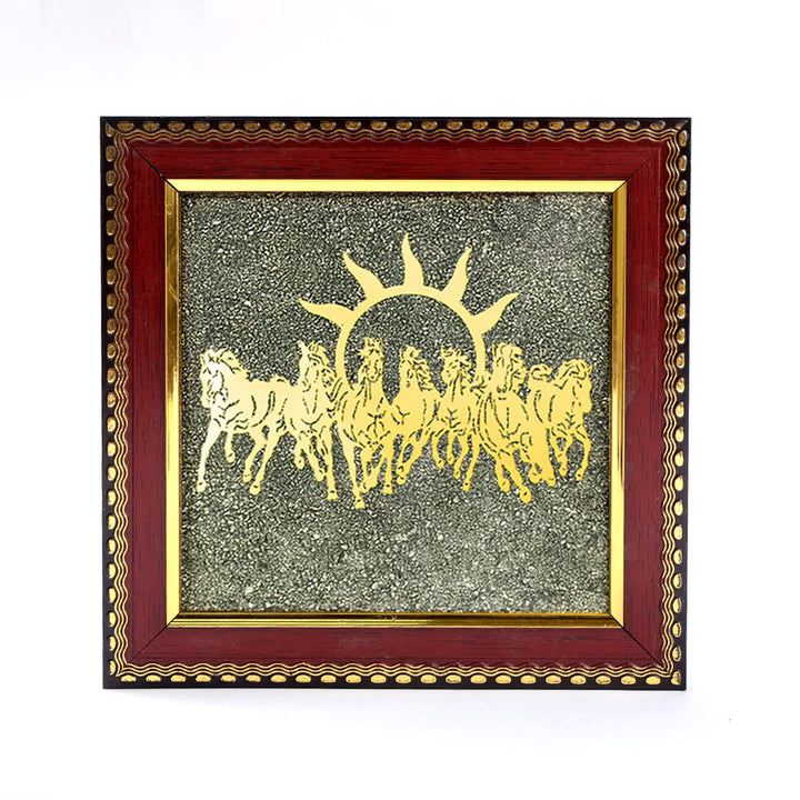 7 Horses Pyrite Frame | Raw Pyrite Crystal Frame | Wealth Attraction Decor | Pyrite Vastu Frame | Seven Horses Vastu Decor | Prosperity Crystal Frame