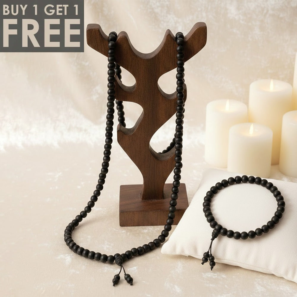 Wearing this divine ebony wood mala helps align your chakras, bring positivity, and aid in personal transformation.