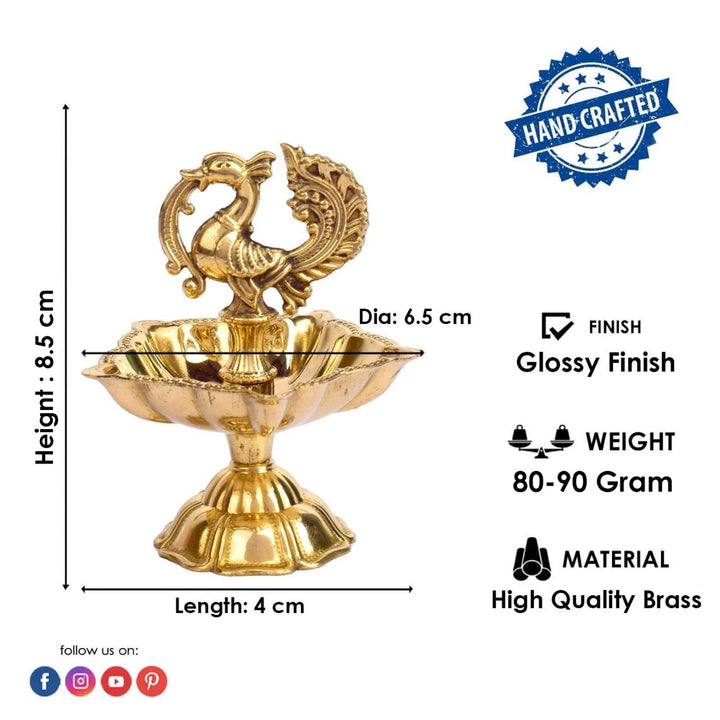 • Item Name: 3–3.5 Inch Peacock Brass Diya (Small)– Elegant Brass Oil Lamp