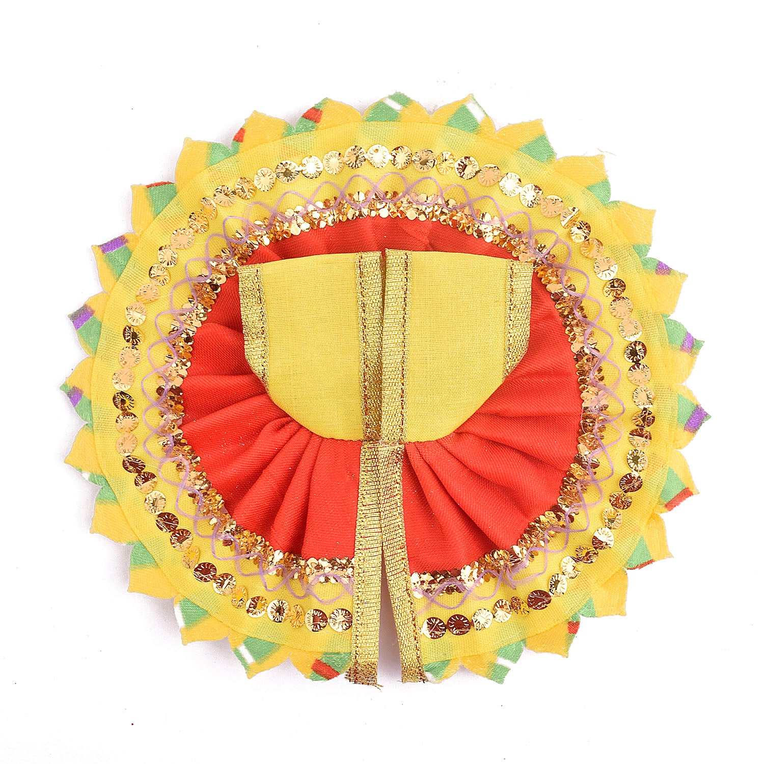 Infuse your Laddu Gopal’s attire with vibrant charm through this beautifully crafted red-yellow dress. Made from quality fabric, it blends rich hues of red and yellow, creating a lively and devotional look for your deity.