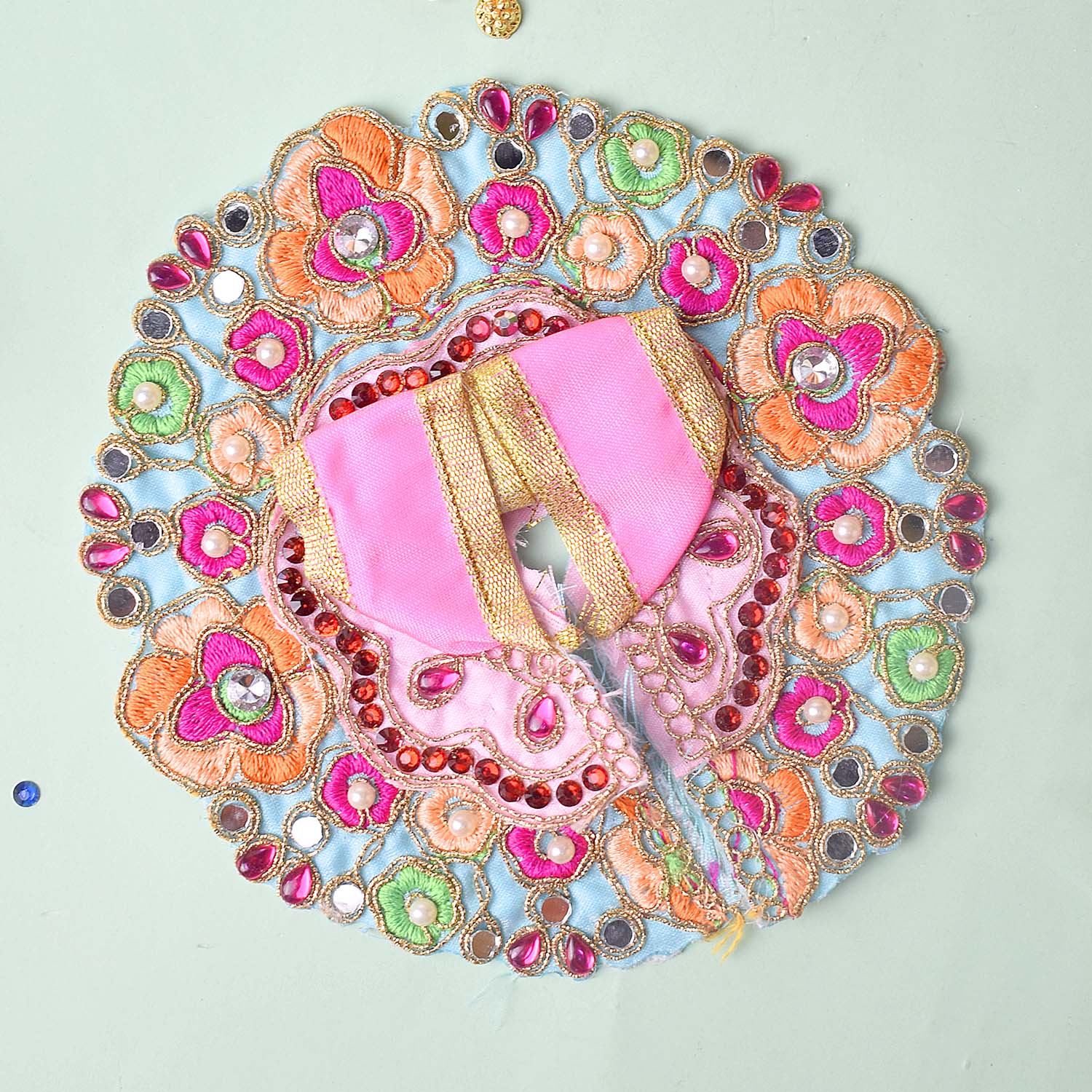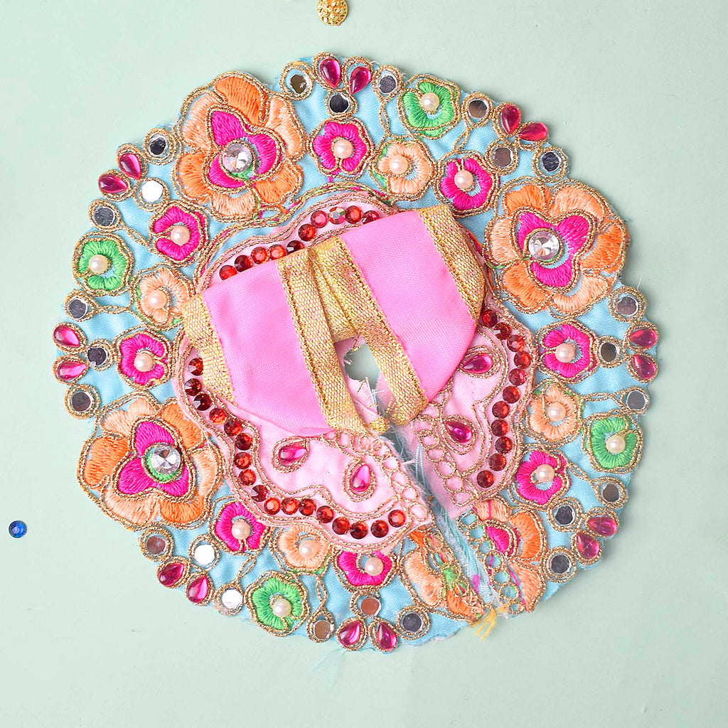 Immerse your divine Laddu Gopal in sheer elegance with this exquisitely crafted dress set, featuring intricate floral embroidery, shimmering beadwork, and sparkling stone accents. Expert artisans have meticulously hand-embroidered delicate floral patterns, creating a luxurious ensemble that radiates devotion and artistic finesse. Perfect for Janmashtami, daily darshan, or special pooja rituals, this splendid dress elevates your deity’s beauty and graces your temple with divine opulence.