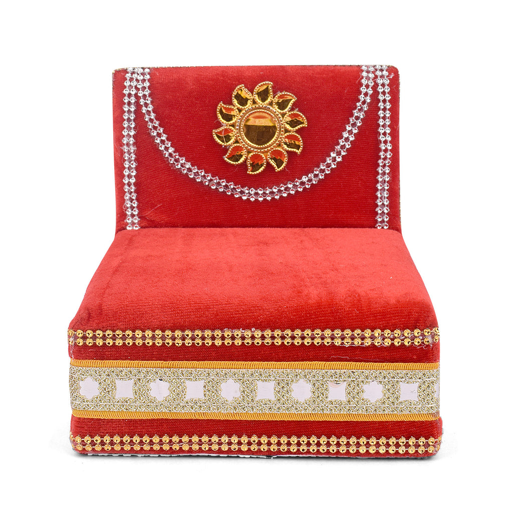 As you place your Laddu Gopal on this sacred throne, watch as the velvet embraces the little lord, showering blessings and grace upon your home. Its charming allure and captivating design make it a true centerpiece of devotion, adding a touch of splendor to your worship space.