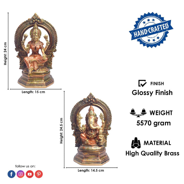 • Item Name: 9.4 Inch Elegant Brass Lakshmi Ganesh Idol