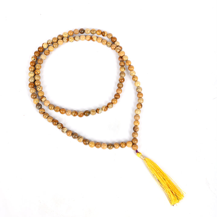 • Item Name:  Picture Jasper Hakik Mala (108 Beads) – A Stone of Harmony & Connection