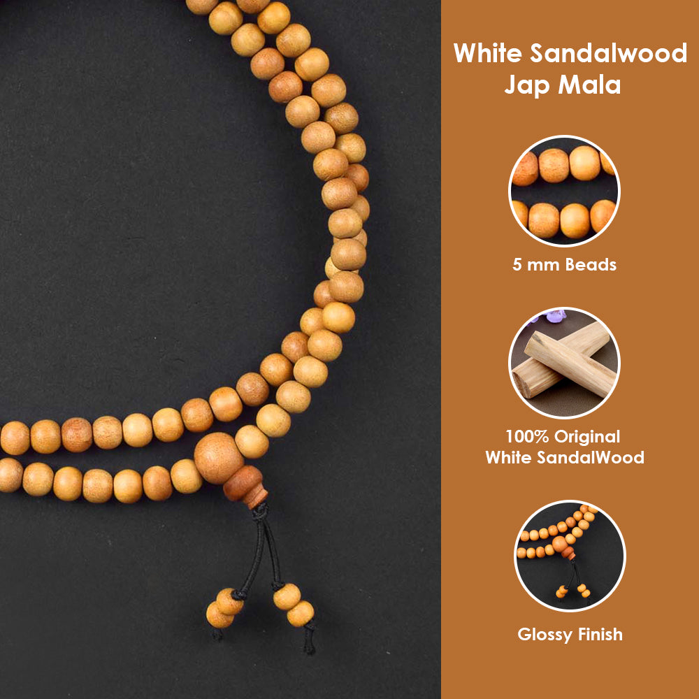 White Sandalwood Jap Mala | Original White Sandalwood Mala | Mala for Vishnu and Lakshmi Jaap | Pure Chandan Mala for Puja | Natural White Sandalwood Prayer Beads |