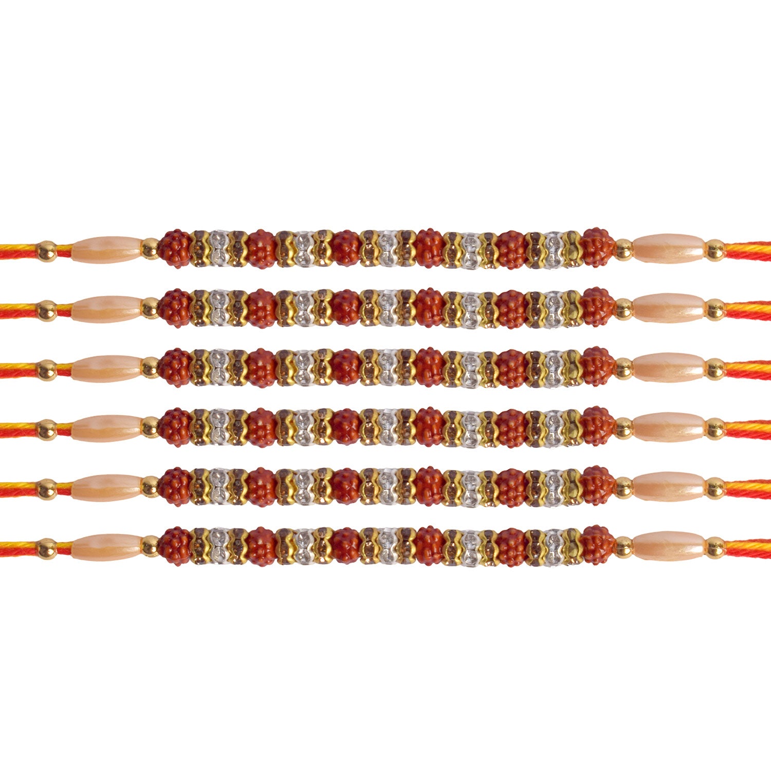 Beautiful Beaded Rudraksha Rakhi Set (Pack of 6)