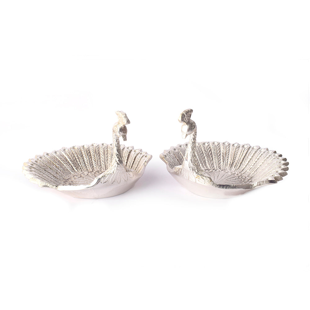 Silver Peacock tray | Silver plated Peacock tray | Metal Peacock tray for pooja | Silver decorative tray | Silver Peacock serving tray | Silver tray for dry fruits | Silver Peacock pooja accessory | Silver Peacock design platter | Silver Peacock tray for gifting | Traditional silver Peacock tray
