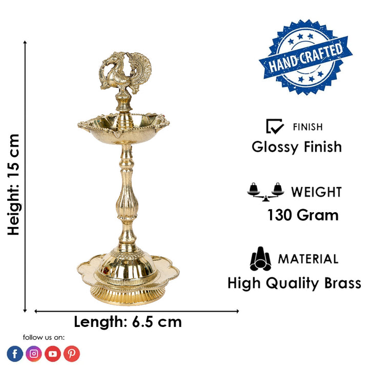 • Item Name:  6 Inch Pure Brass Peacock Kerala Diya