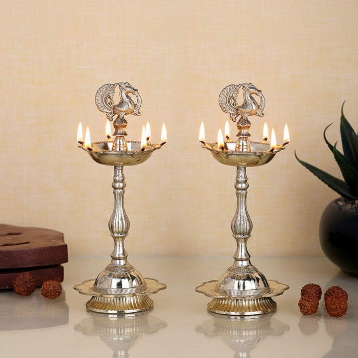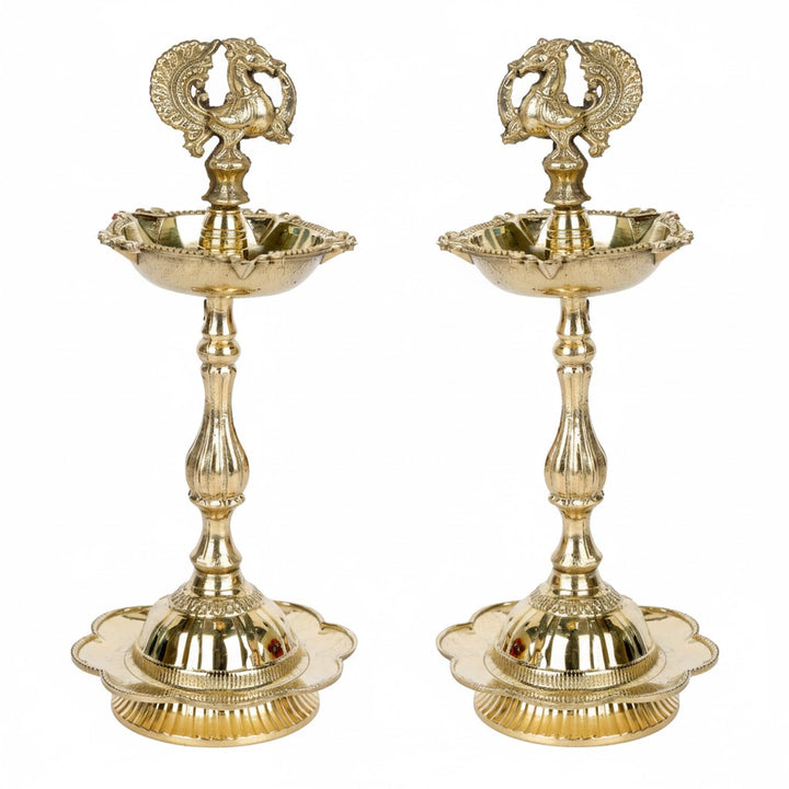 Buy 6 Inch Pure Brass Peacock Kerala Diya | Satvikstore.in – satvikstore.in