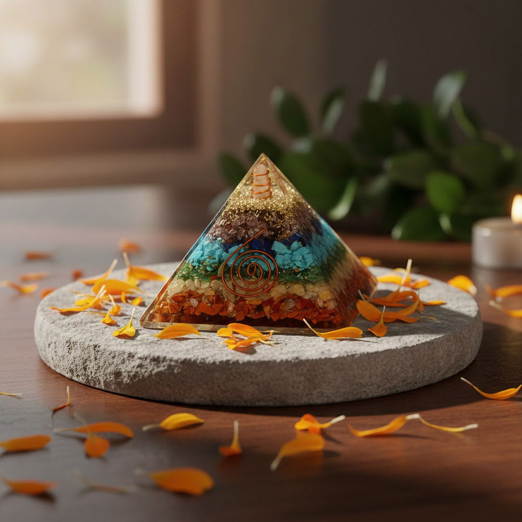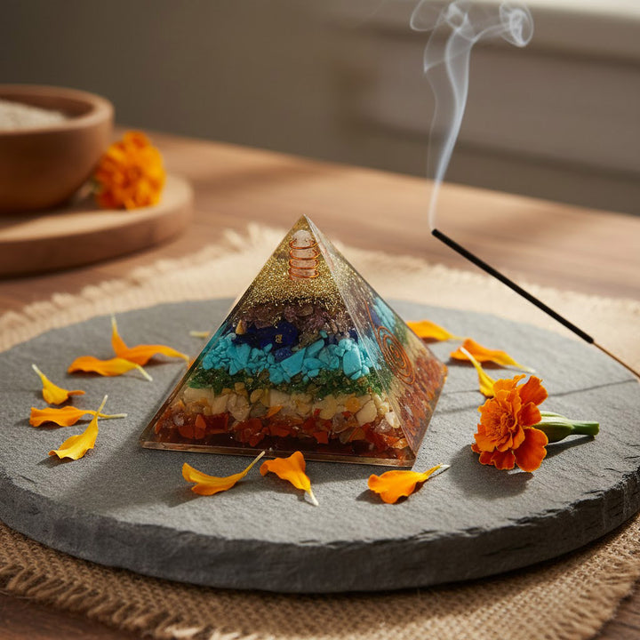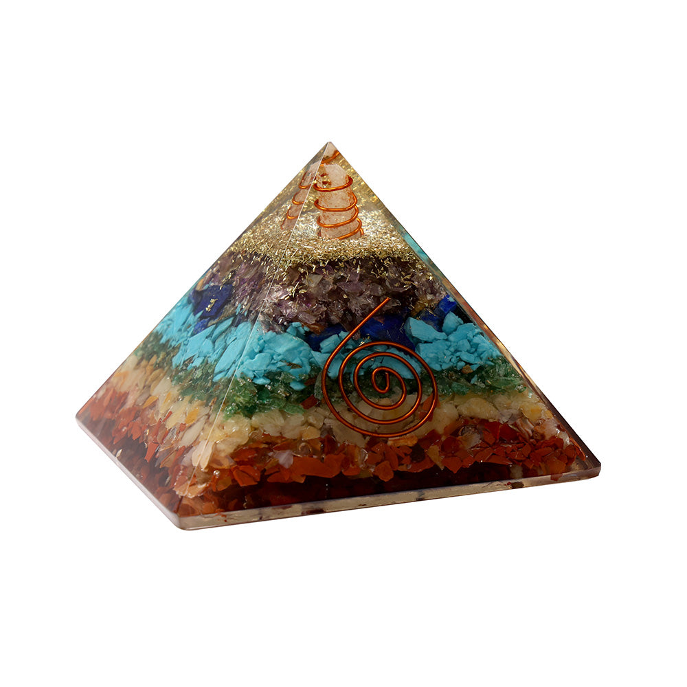 Each crystal layer resonates with a specific chakra, helping to restore harmony, reduce stress, and improve overall wellbeing. The pyramid shape amplifies energy, making it ideal for meditation, healing sessions, and spiritual decor in your home or office.