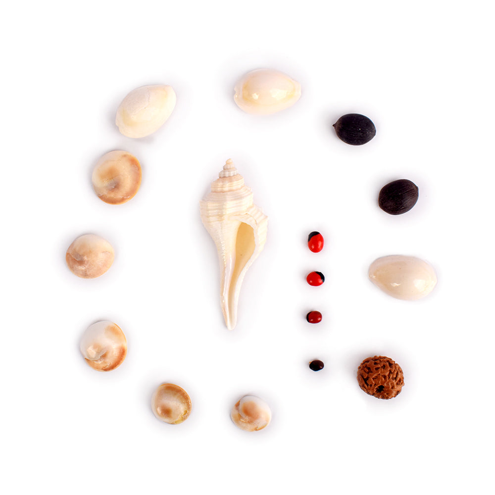 Item Name: Shree Lakshmi Ganesh Yantra Kit with (Shankh, Rudraksha bead, Kamal Gatta bead, Gunja Bead, Kodi, Gomti Chakra)