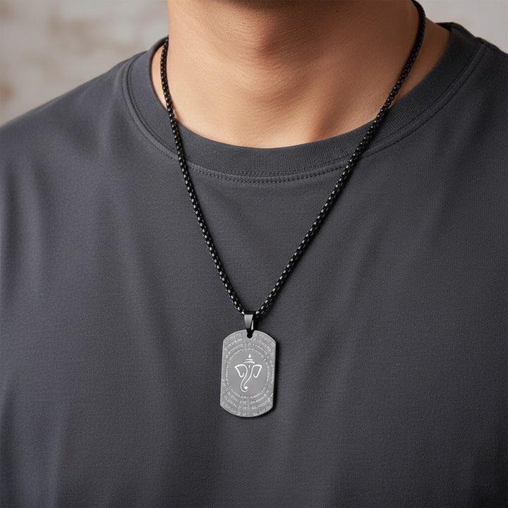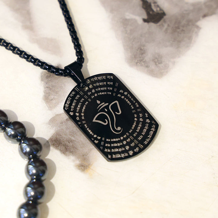 Ganpati Shlok MicroCarved Black Pendant | Ganesha Shlok Pendant | MicroCarved Ganpati Pendant | Ganesh Devotional Pendant | Black Ganesha Pendant | Hindu Shlok Pendant | Ganpati Jewelry