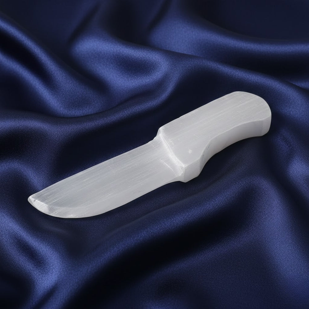 About the Product: The Selenite Knife is a powerful spiritual and healing tool crafted from natural selenite crystal, known for its high vibrational and cleansing energy. Traditionally used for aura cleansing, energy cutting, and removing negative attachments, the selenite knife is an essential tool for healers, meditators, and spiritual practitioners.