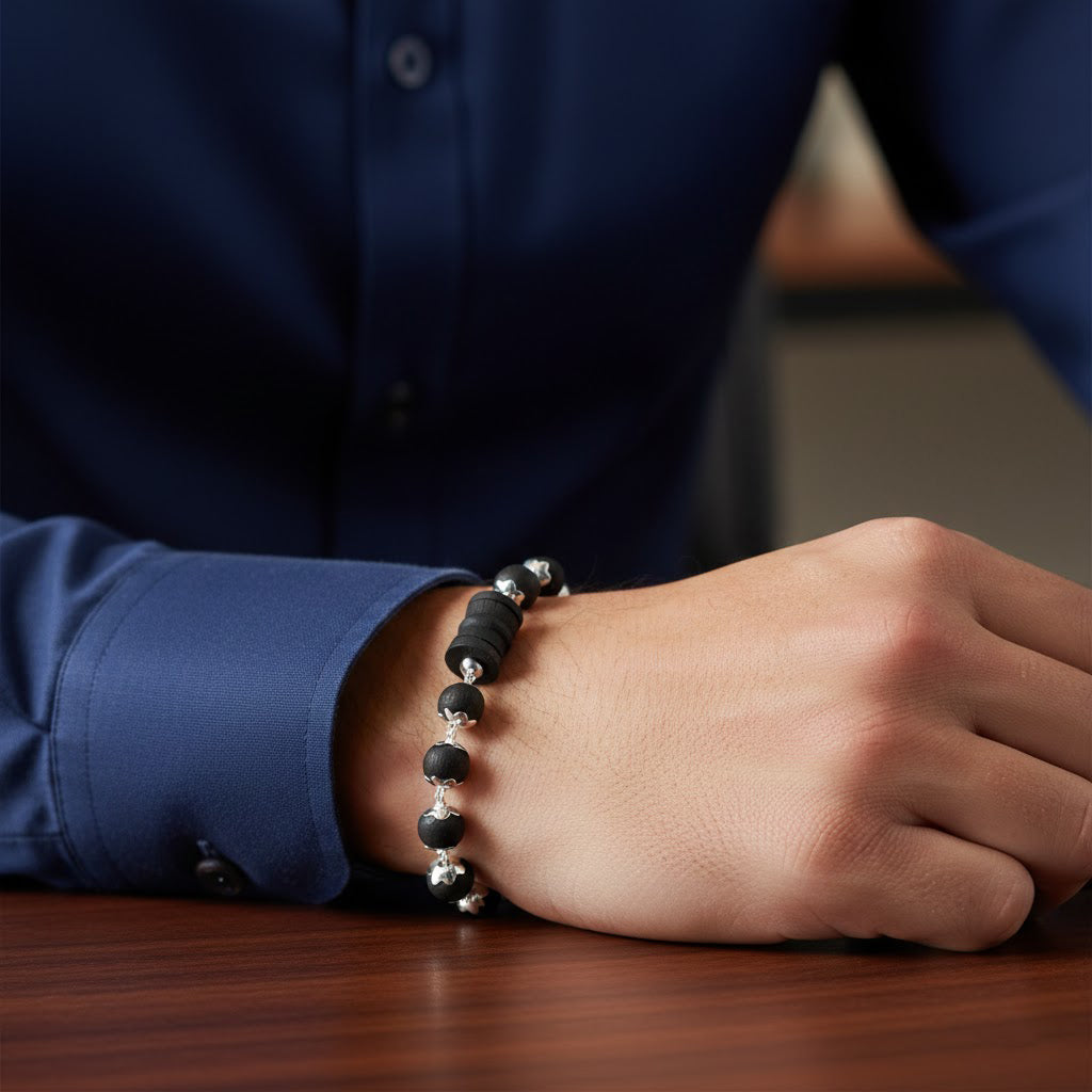 • Item Name: Govt. Certified 8mm Silver Plated Karungali Damru Bracelet