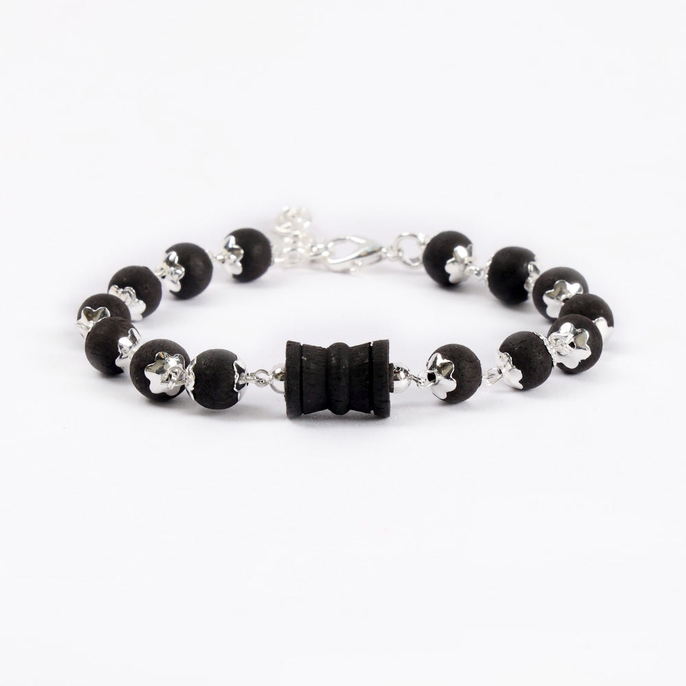 Govt. Certified 8mm Silver Plated Karungali Damru Bracelet