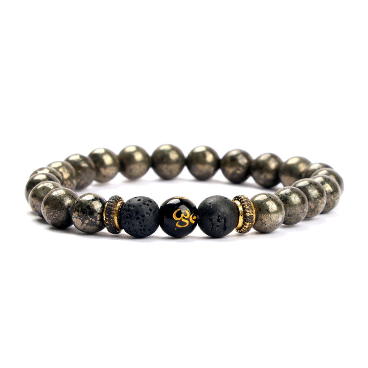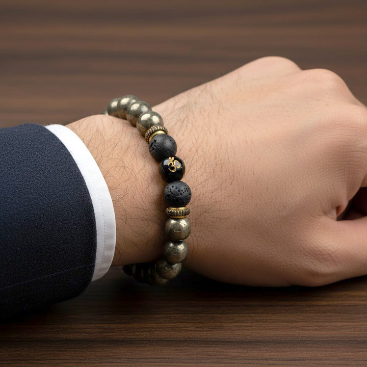 Om Raw Pyrite Bracelet | Lava Stone Om Bracelet | Pyrite Wealth Bracelet | Grounding Healing Stone Bracelet | Spiritual Om Crystal Bracelet | Prosperity Energy Jewelry