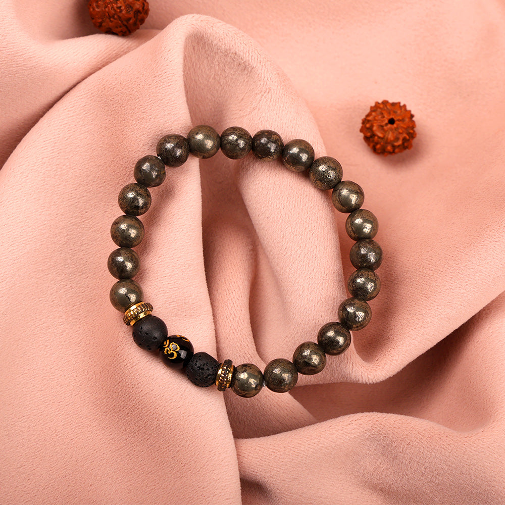 Buy Om Raw Pyrite Lava Healing Stone Bracelet | Satvikstore.in – satvikstore.in