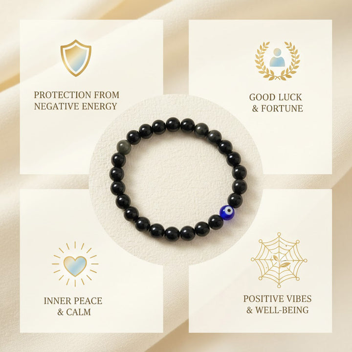 About the Product: The Protection & Love Combo is a powerful spiritual and healing set designed to attract prosperity, love, protection, and devotion. This thoughtfully curated combo includes a Raw Pyrite Bracelet for wealth, a Rose Quartz Bracelet for love and emotional balance, a Black Obsidian Evil Eye Bracelet for protection, and a Hanuman Chalisa Micro-Carved Pendant for divine spiritual support.