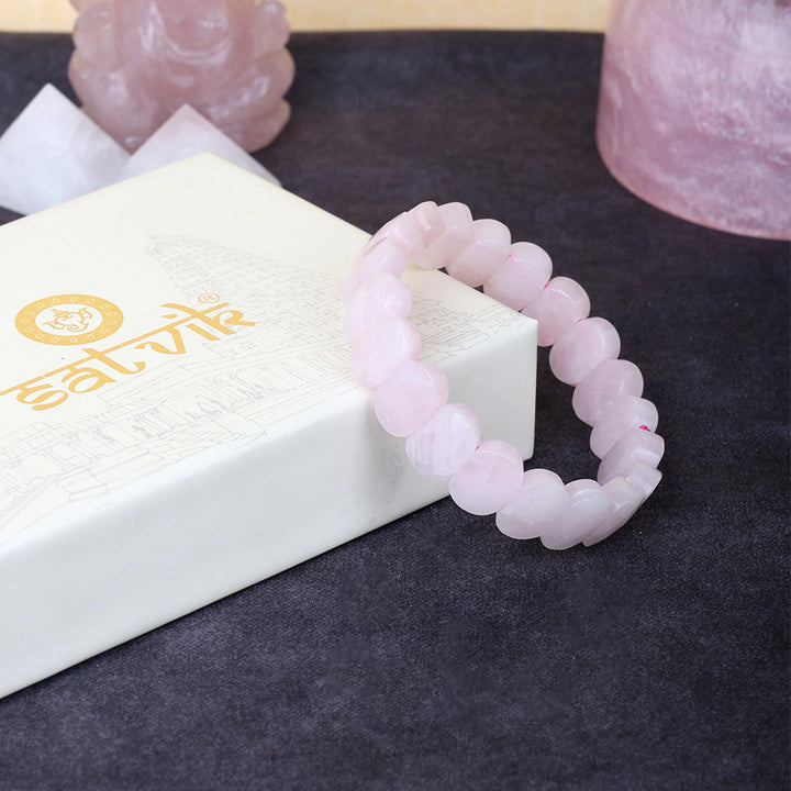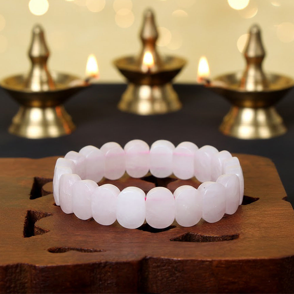 Buy Rose Quartz Flat-Beaded Healing Stone Bracelet | Satvikstore.in – satvikstore.in