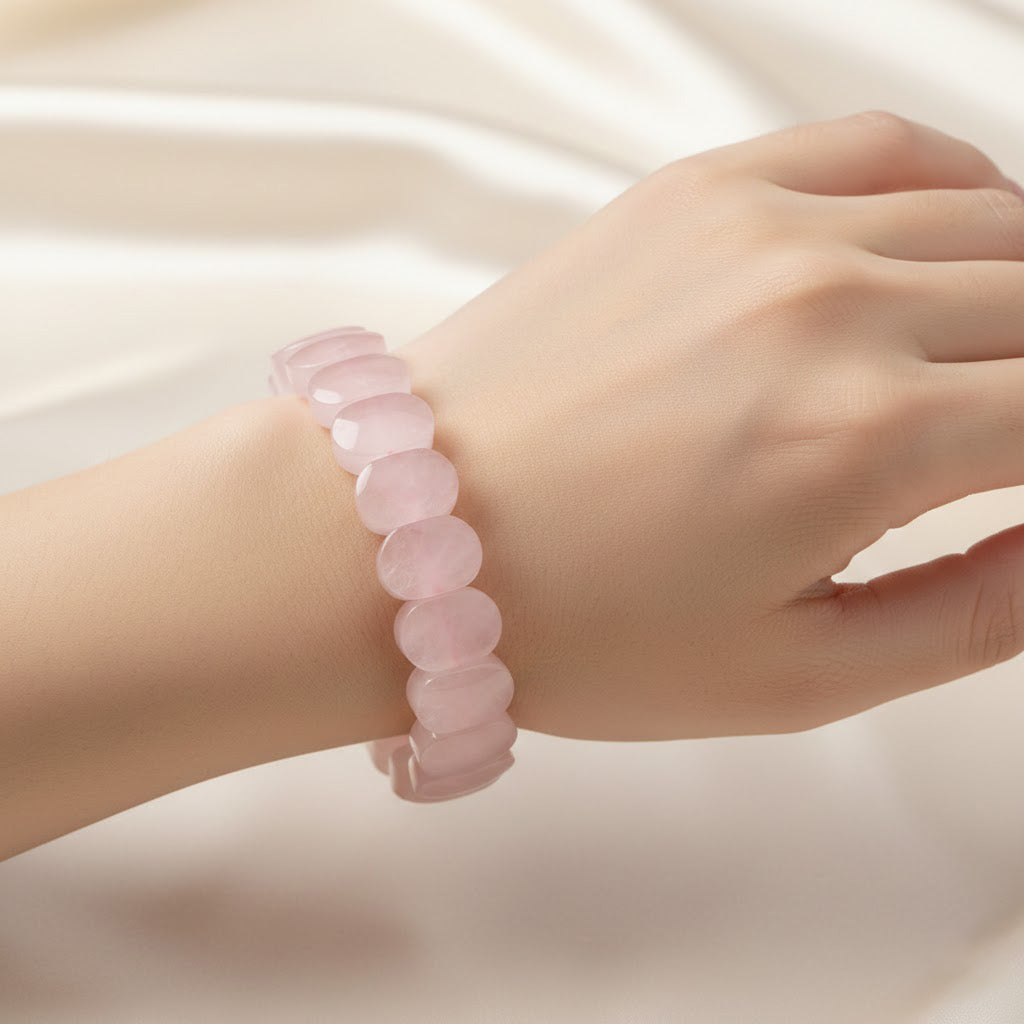 • Item Name: Rose Quartz Flat-Beaded Healing Stone Bracelet