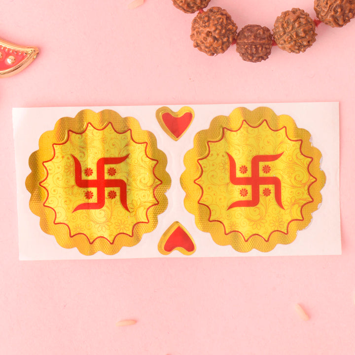 "Enhance the spiritual energy of your space with Swastik Blessings for Every Home stickers. These beautifully designed stickers feature the auspicious Swastik symbol, bringing positive vibes, prosperity, and good fortune to your home. Perfect for decorating walls, doors, or any surface, these stickers add a touch of divinity and sacred charm to your surroundings."