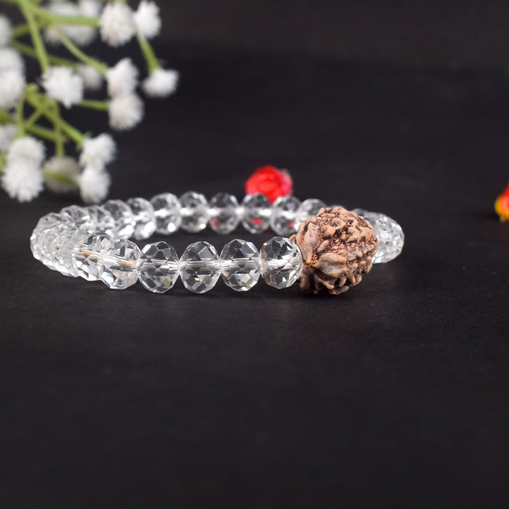 • Item Name: 3 Mukhi Rudraksha & Sphatik Bead Bracelet for Energy and Transformation