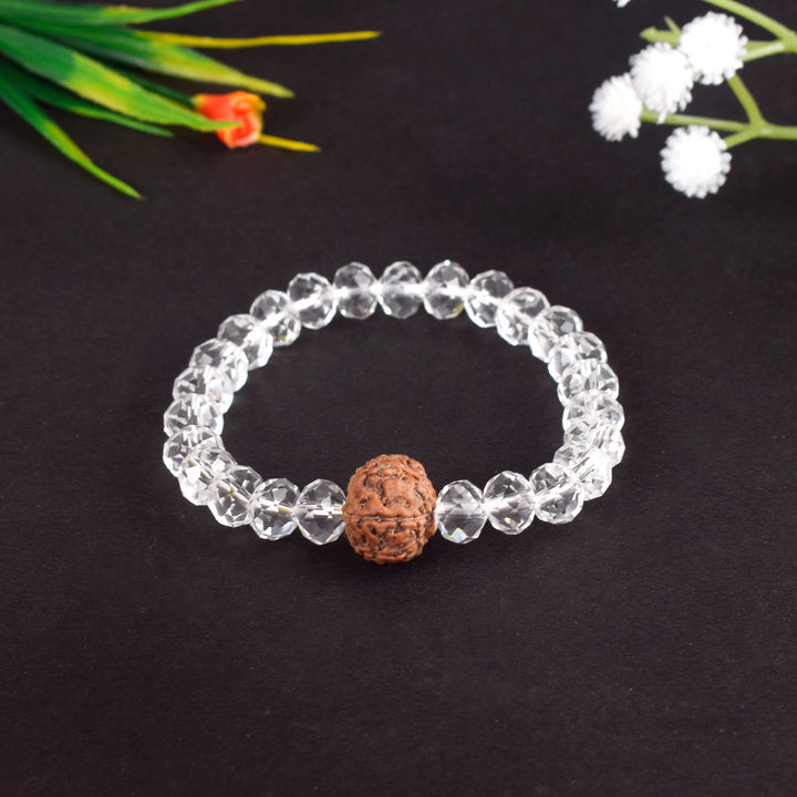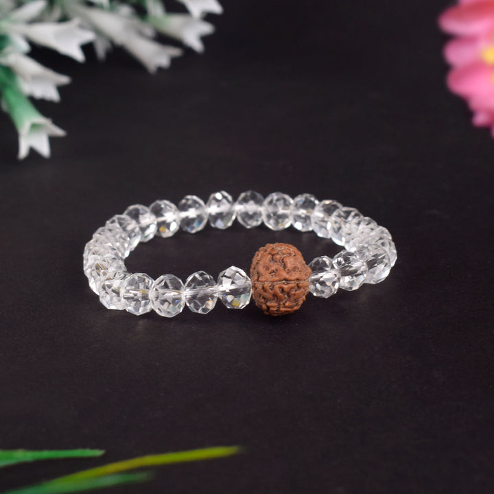 • Item Name: 7 Mukhi Rudraksha & Sphatik Bead Bracelet for Wealth and Prosperity