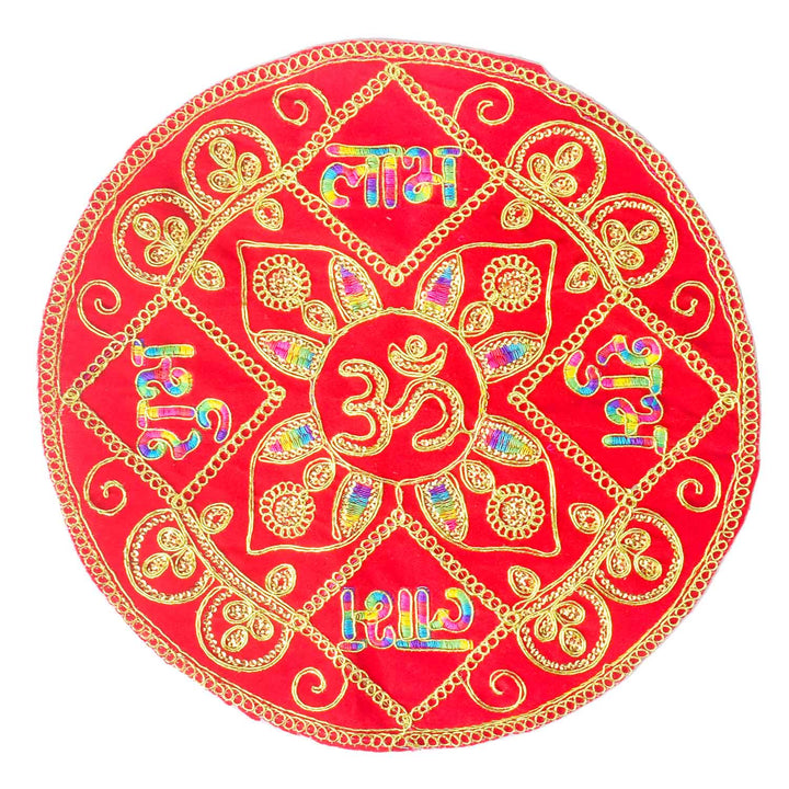 Round Shape Asan | Velvet Pooja Cloth | Small Round Pooja Mat | Asan for Deity | Round Chowki Cover | Red Pooja Mat | Velvet Aasan for Puja | Round Mat for Temple | Decorative Puja Aasan | Mandir Cloth Round