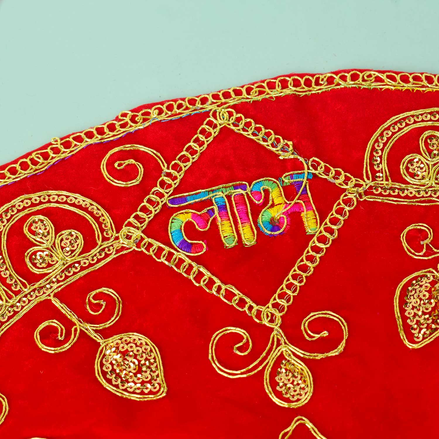 • Used as decorative backdrop or cover on chowki, bajot, or deity table