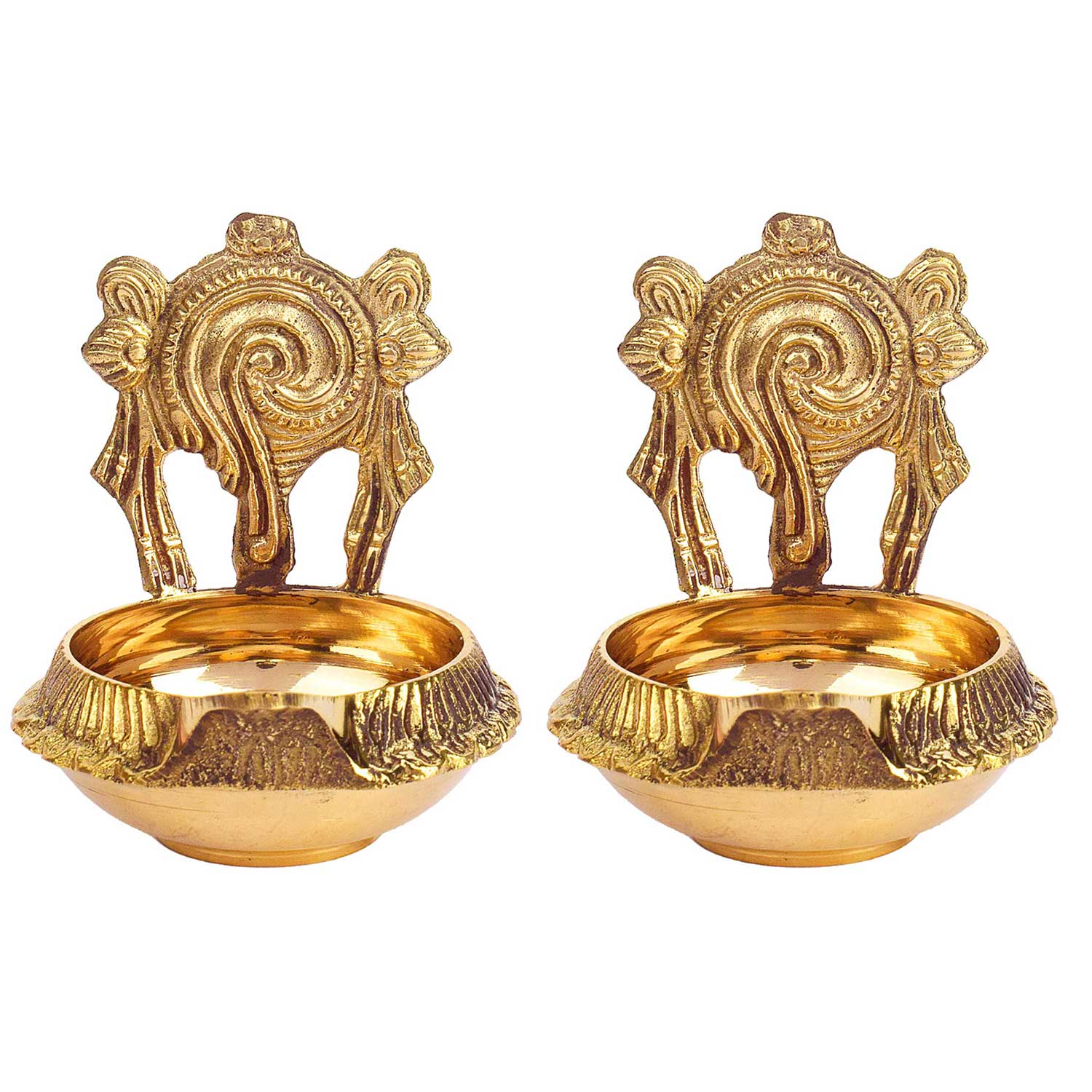 • Item Name: 3–3.5 Inch Kuber Shankh Chakra Brass Diya – Pack of 2