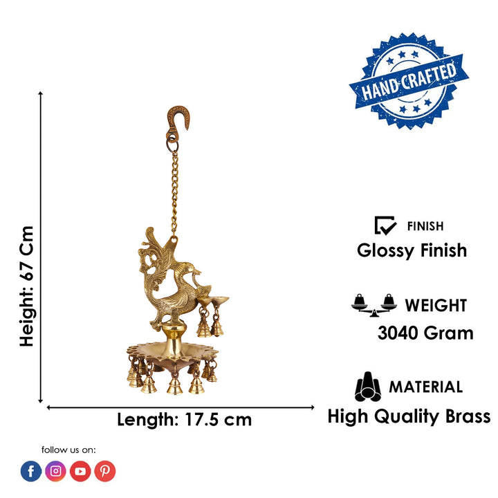 • Item Name: Brass Peacock Diya Hanging with Bells