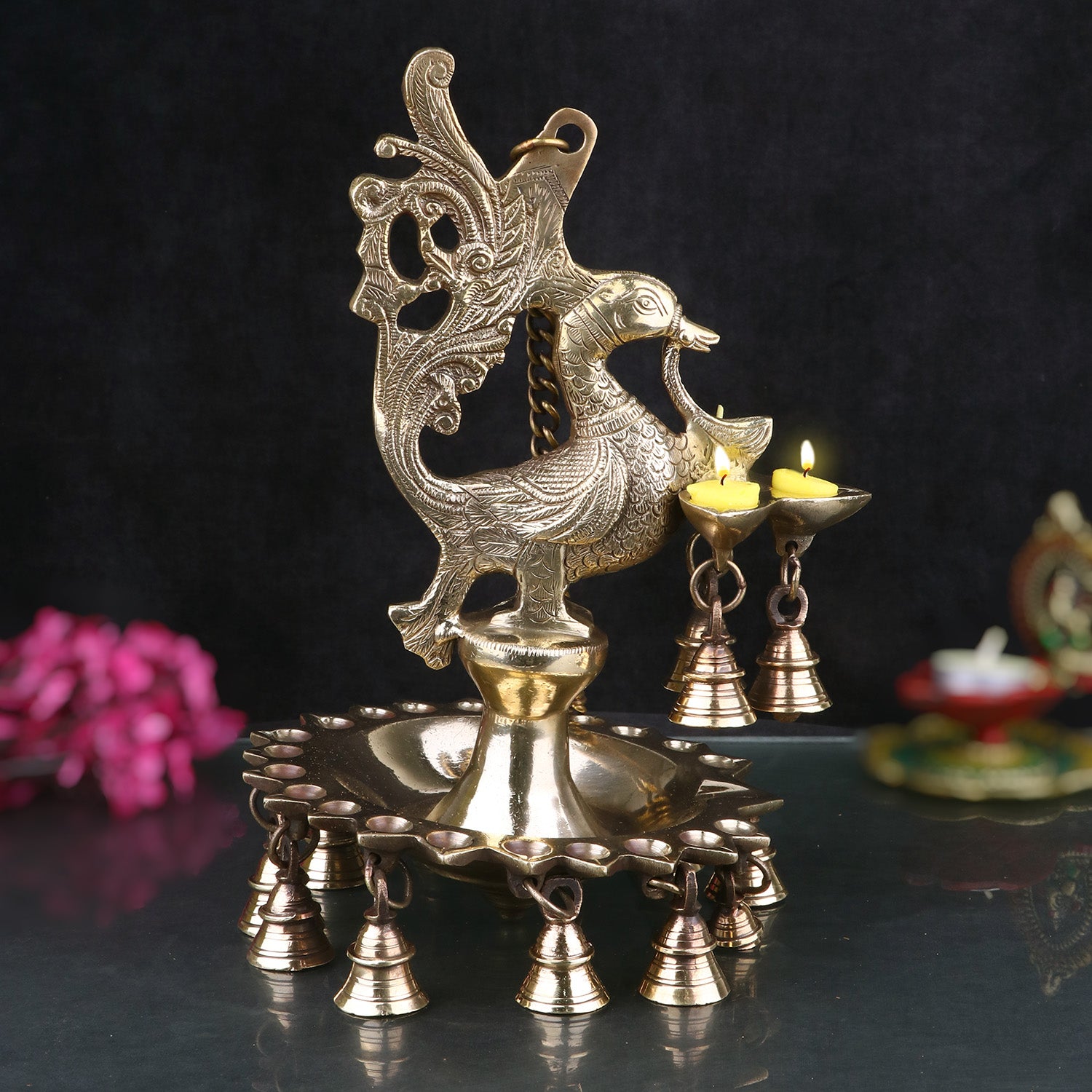 Brass Peacock Diya Hanging with Bells | Buy Online | Satvikstore.in – satvikstore.in