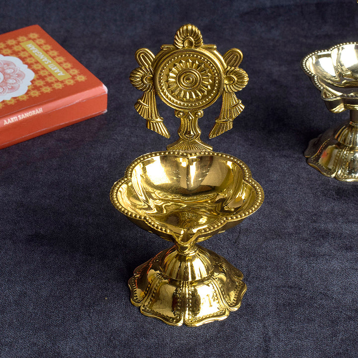 Chakra Brass Diya | Designer Brass Diya | Elegant Puja Diya | Spiritual Brass Lamp | Decorative Temple Diya | Brass Oil Lamp | Traditional Indian Diya | Chakra Design Diya | Brass Diya for Home Temple | Hindu Pooja Accessories |