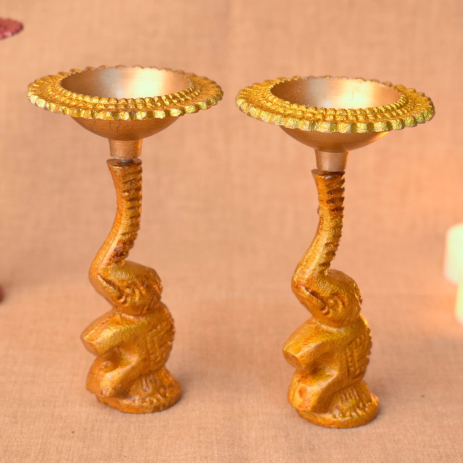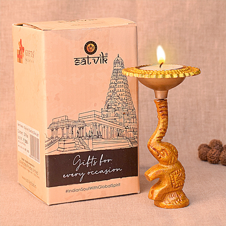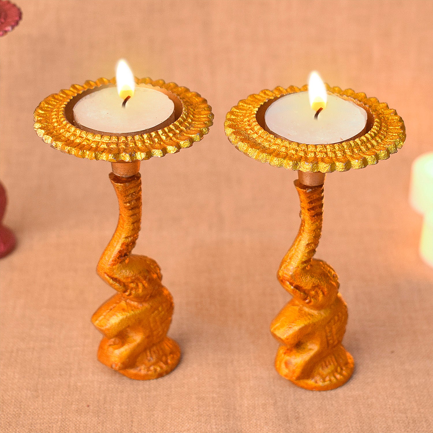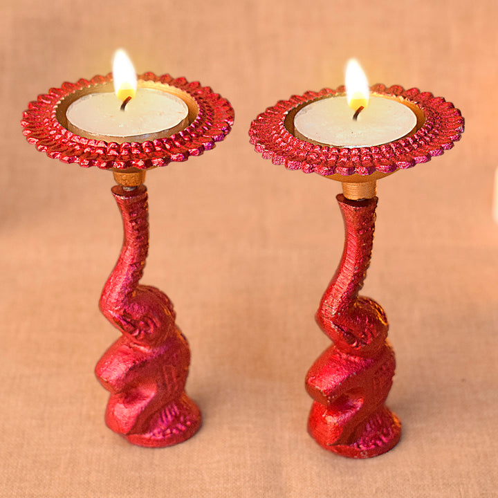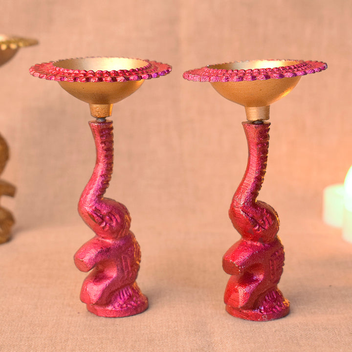 Multicolor Elephant Diya Metal Table Dia Laxmi Candle Tea Light Holder (Pack of 2)