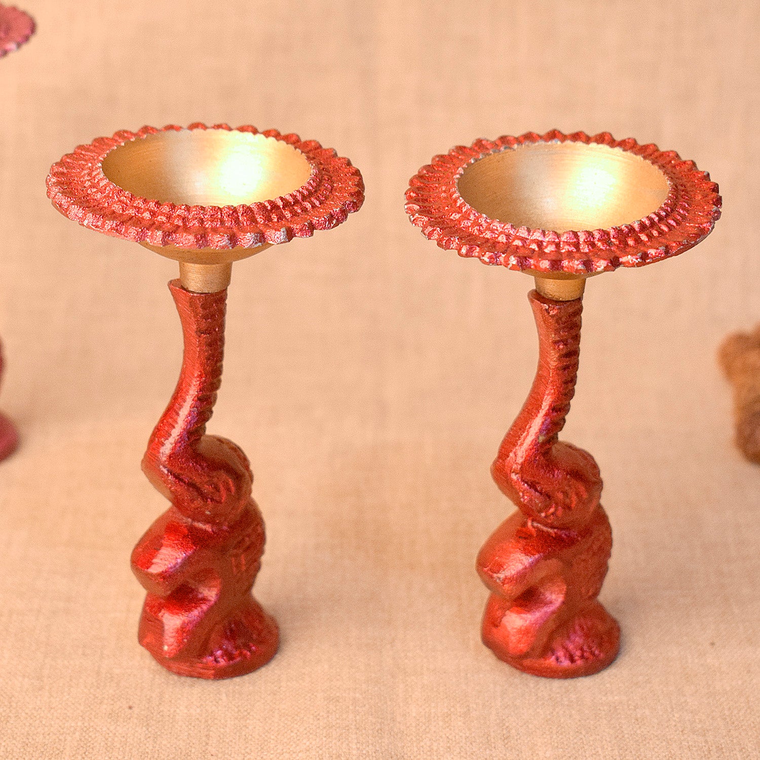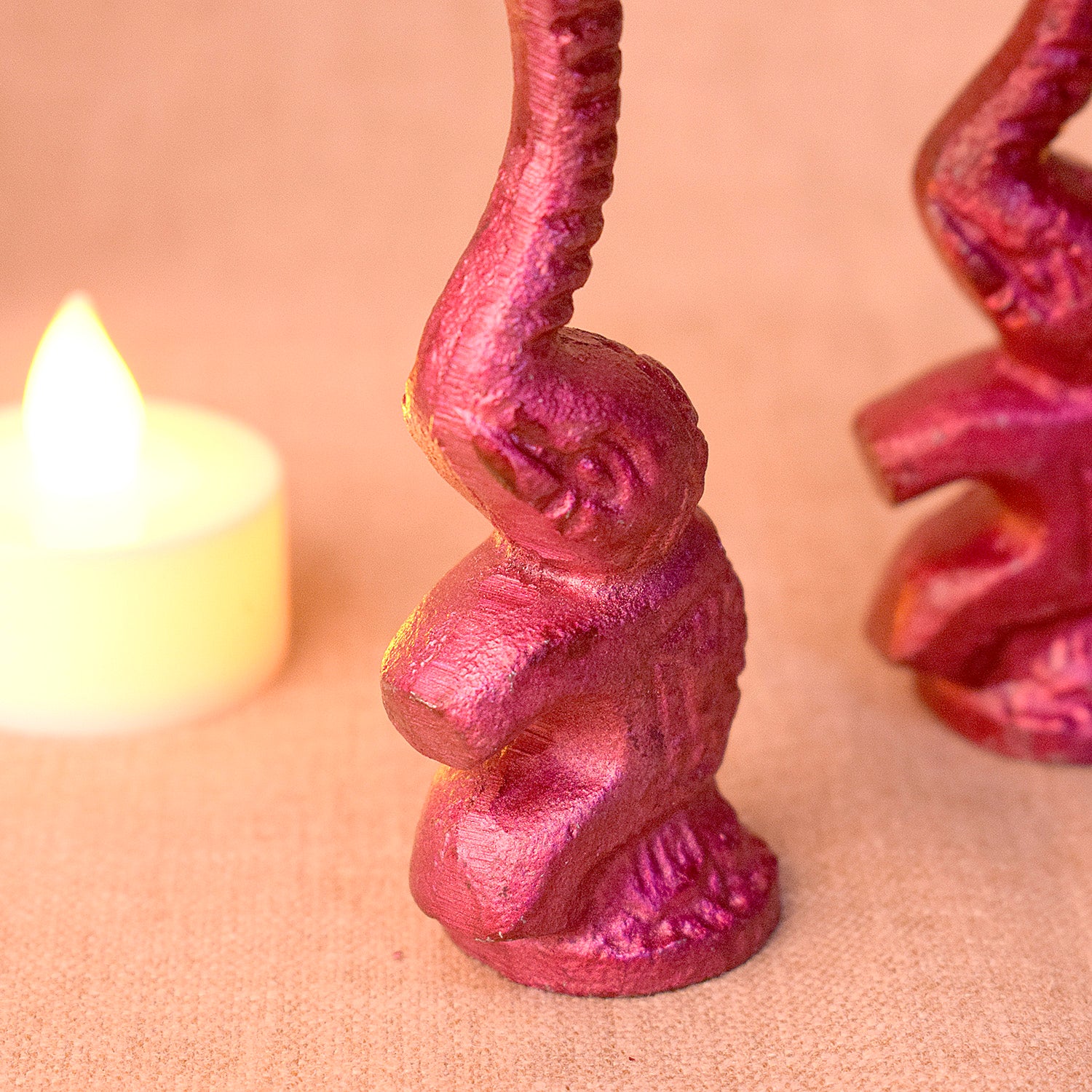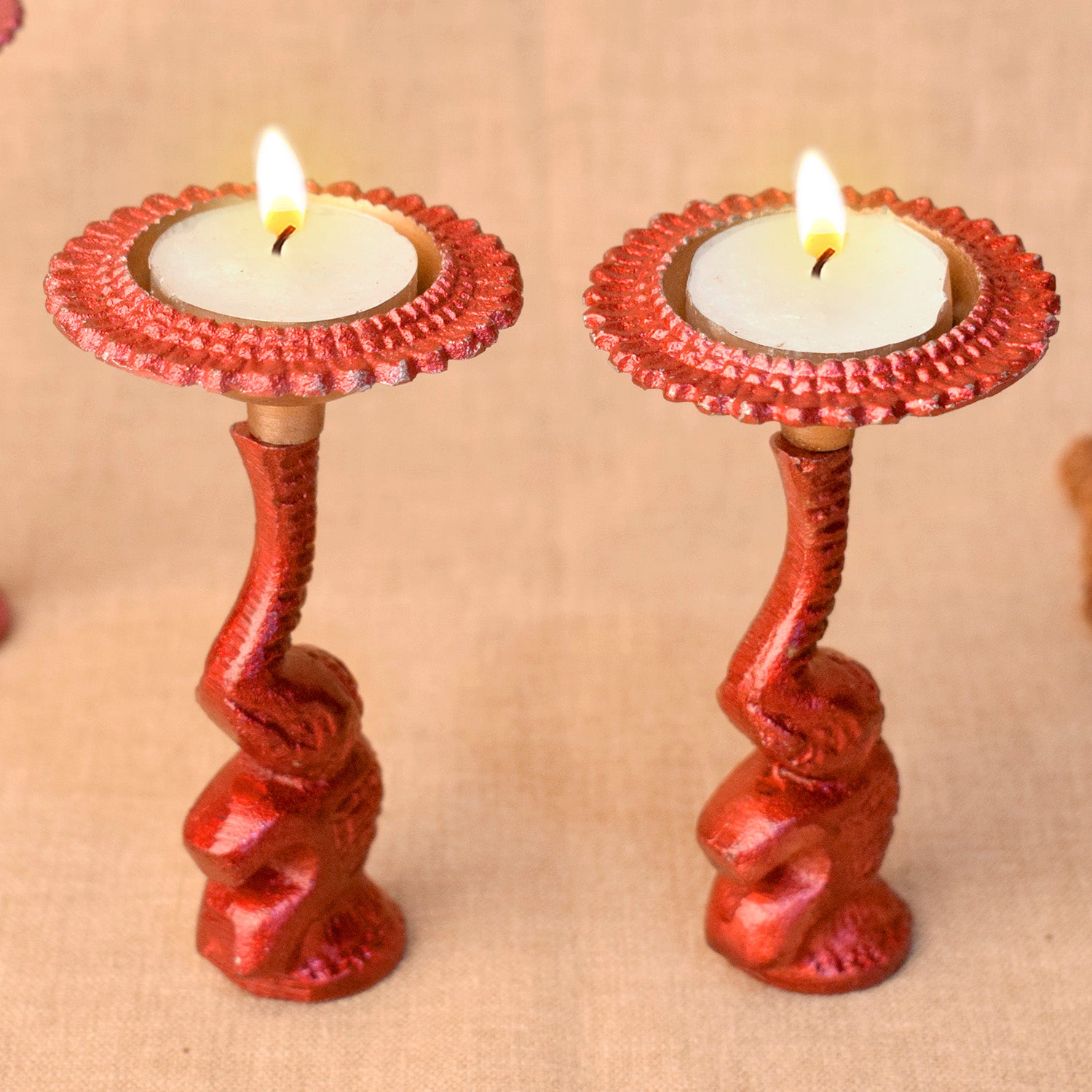 Multicolor Elephant Diya Metal Table Dia Laxmi Candle Tea Light Holder (Pack of 2)