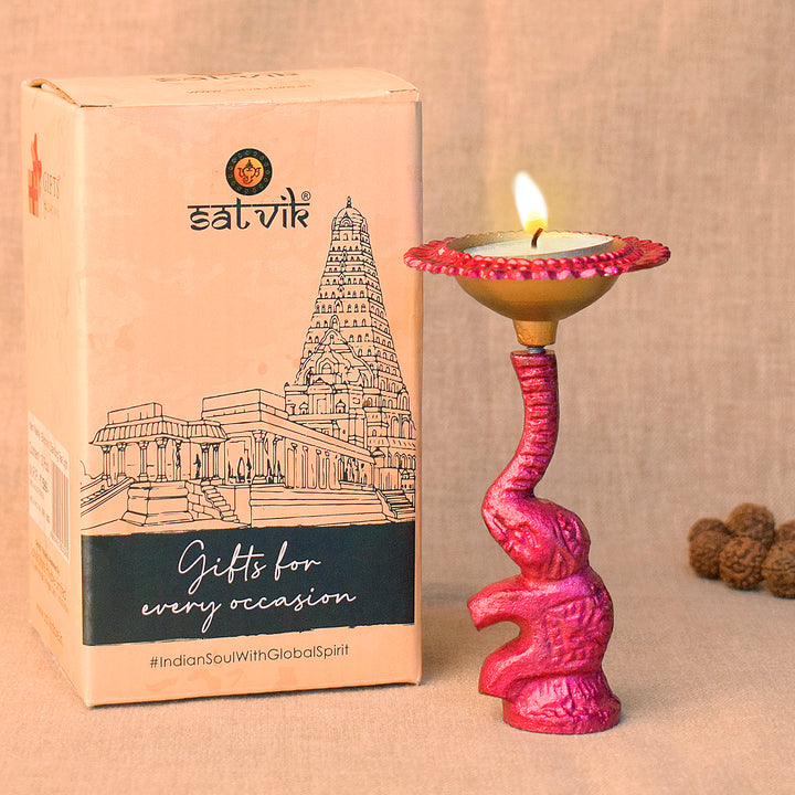 About Product:  The Metal Diwali Elephant Diya is a magnificent blend of artistic elegance and cultural symbolism, crafted to add a regal touch to the Diwali celebration. Fashioned from durable metal, this diya takes the form of a majestic elephant, infusing a sense of grace and grandeur into the traditional lighting rituals of the festival of lights.As an integral part of Diwali decorations, the Metal Diwali Elephant Diya becomes a focal point, drawing attention with its cultural and artistic significance. Placed on decorative trays or incorporated into rangoli designs, this diya adds a touch of sophistication and visual appeal to the festive ambiance.